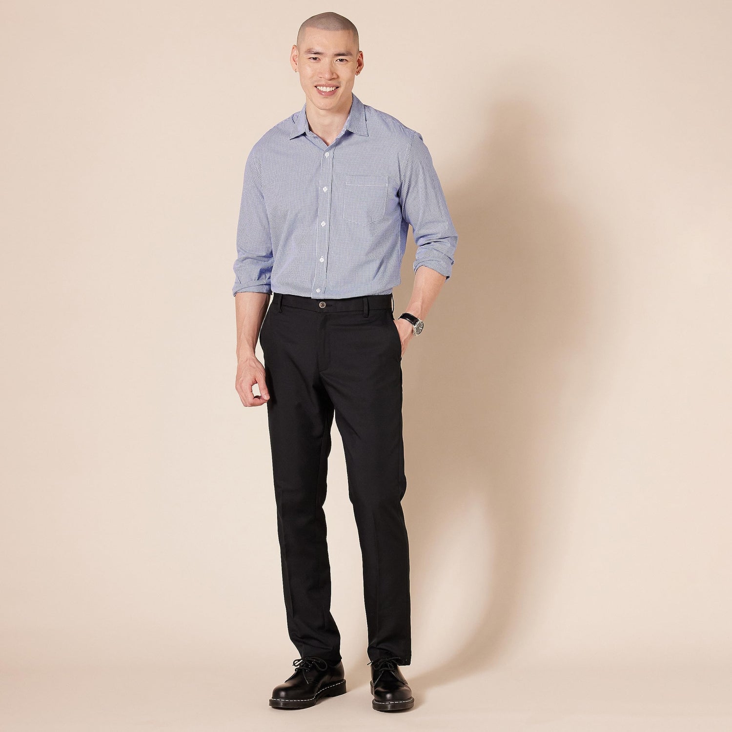 • BUSINESS CASUAL: Diese Hose mit flacher Vorderseite kann mit einem Hemd oder mit einem Blazer getragen werden. Trage dazu Amazon Essentials Derbies für Männer und Ledergürtel als Accessoire.