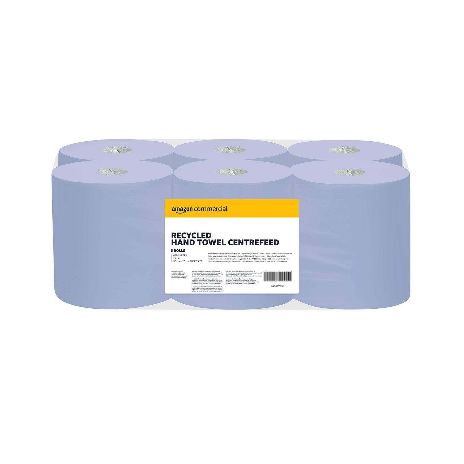 AmazonCommercial Papierwischtücher, 2-lagig Centrefeed-Rolle Recycelt, 6 Rollen (1 packung), 450 Blätter per Rolle, Blattgröße: 30 x 20 cm