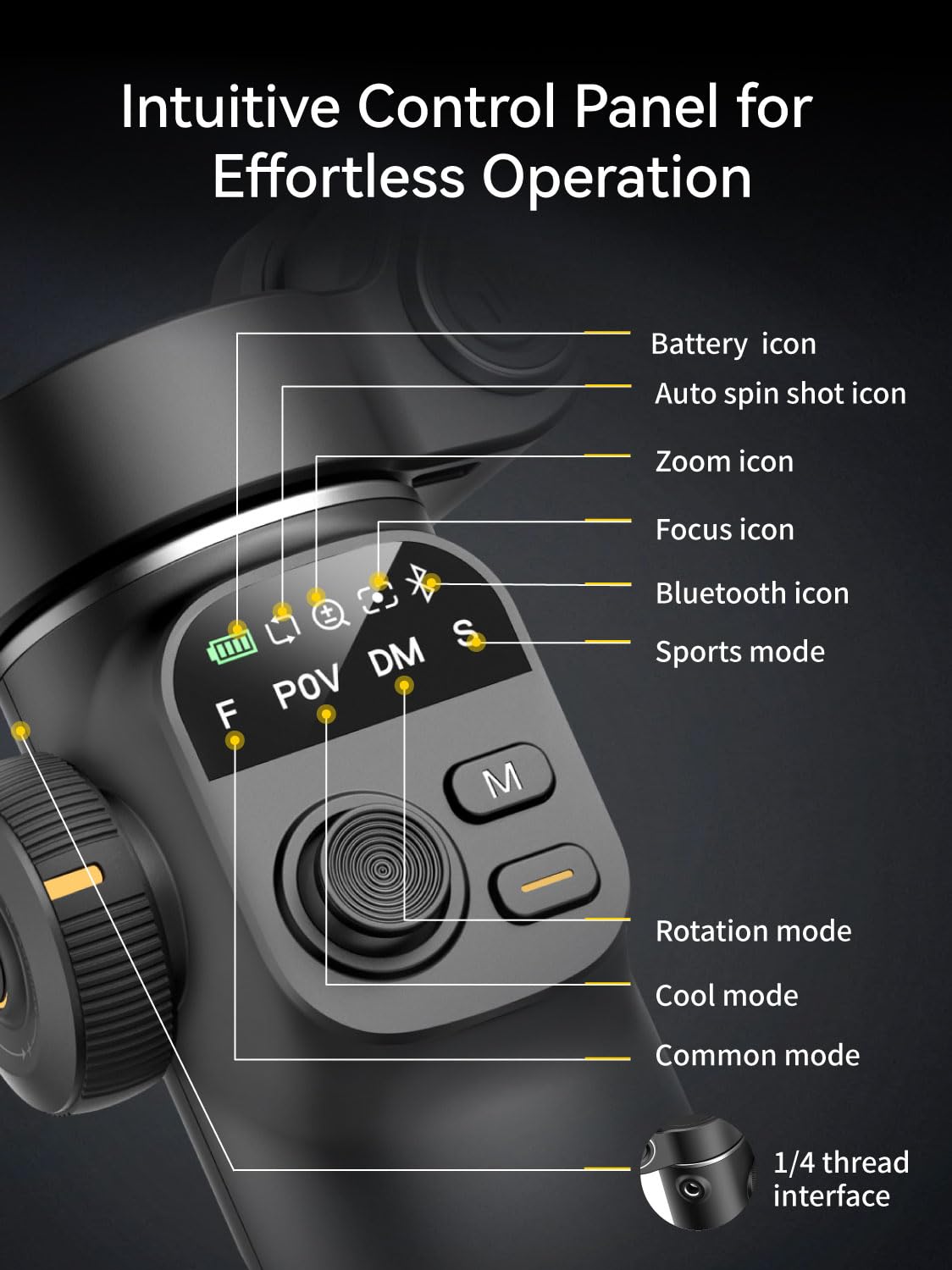 • Automatische 280°-Drehung: Lassen Sie Ihrer Kreativität freien Lauf mit unserem hochmodernen Gimbal-Stabilisator, der eine beeindruckende automatische 280°-Drehung bietet. Egal, ob Sie atemberaubende Landschaften, lebendige Stadtansichten oder dynamische Action-Aufnahmen machen, unser Gimbal sorgt dafür, dass Ihr Filmmaterial flüssig und professionell bleibt