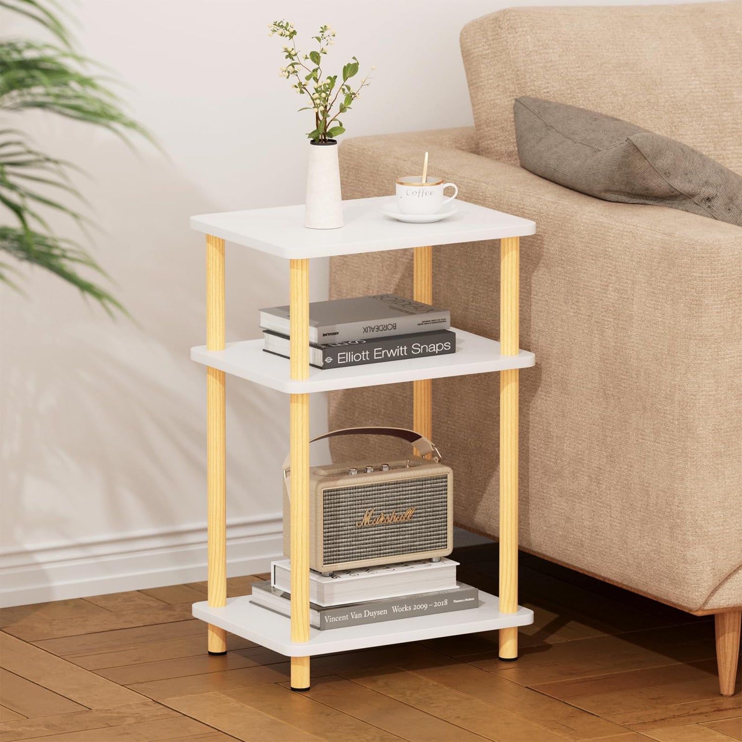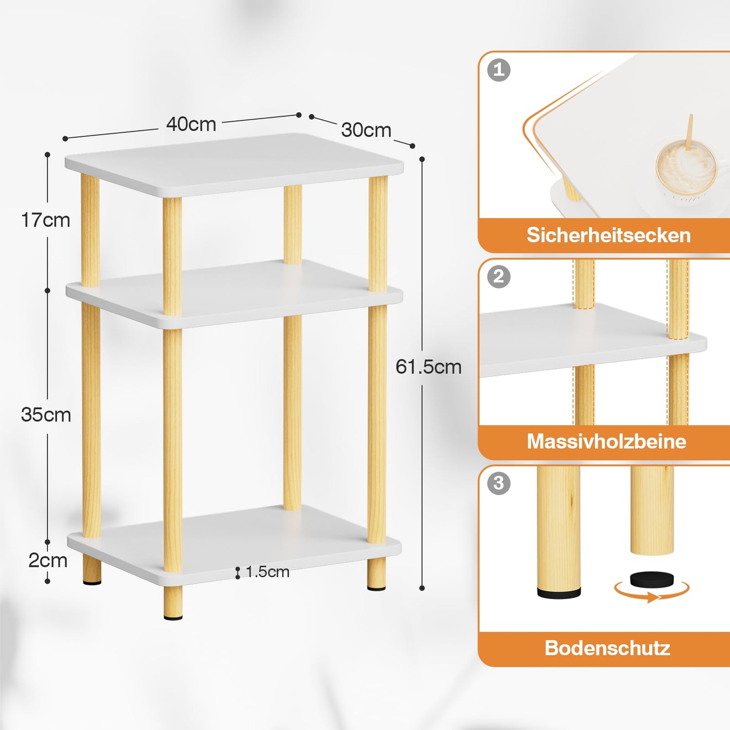 APICIZON 3 Tier Beistelltisch Schmal, Nachttisch Holz, Tisch Klein, Kleiner Beistelltisch fürs Wohnzimmer, Schlafzimmer, Balkon, Arbeitszimmer, Natur&Weiss