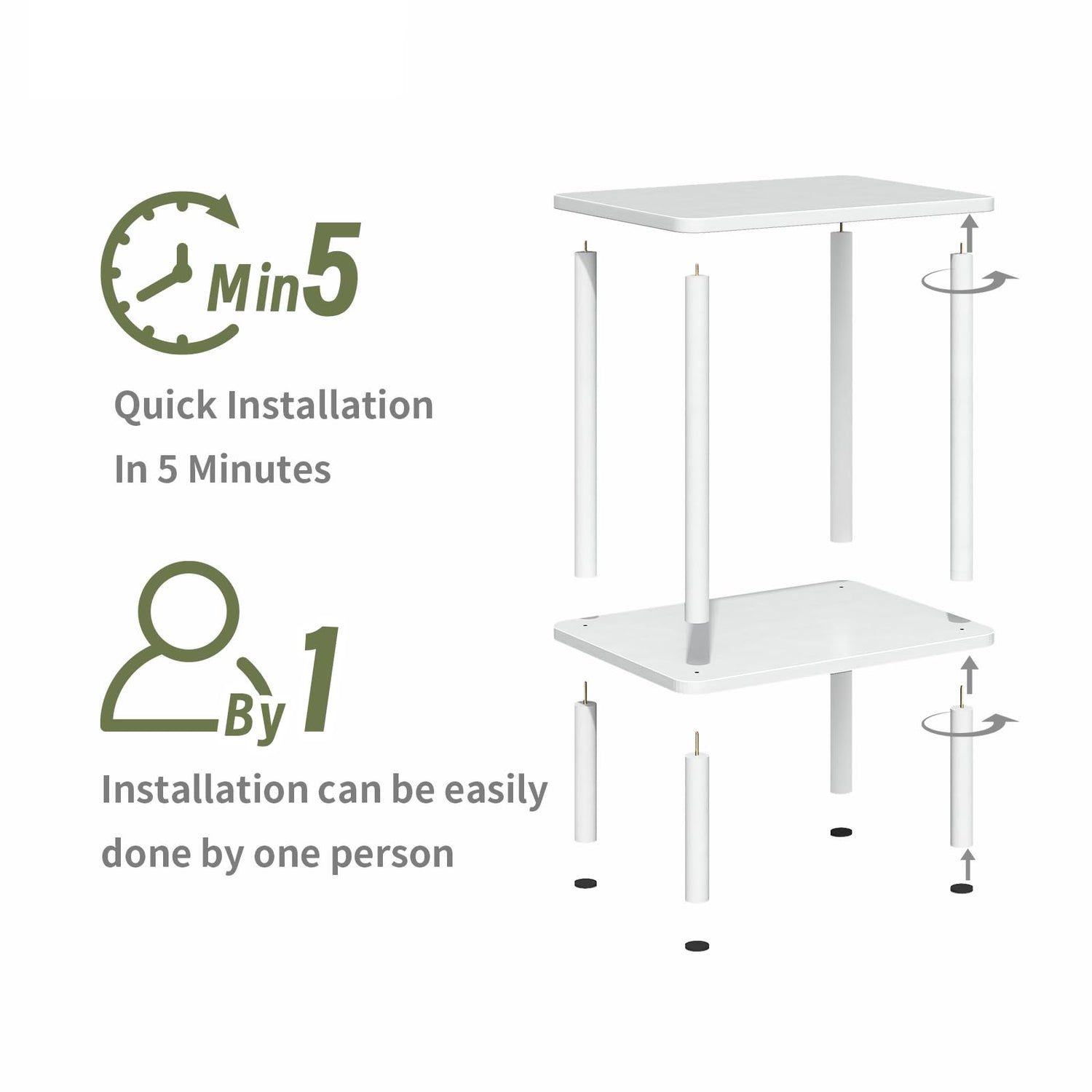 APICIZON Beistelltisch Holz, 2 Tier Beistelltisch Weiss, Nachttisch Schmal, 40x30x52cm, Beistelltische Klein mit Stauraum, Beistelltische Schmal für Wohnzimmer, Schlafzimmer, Balkon