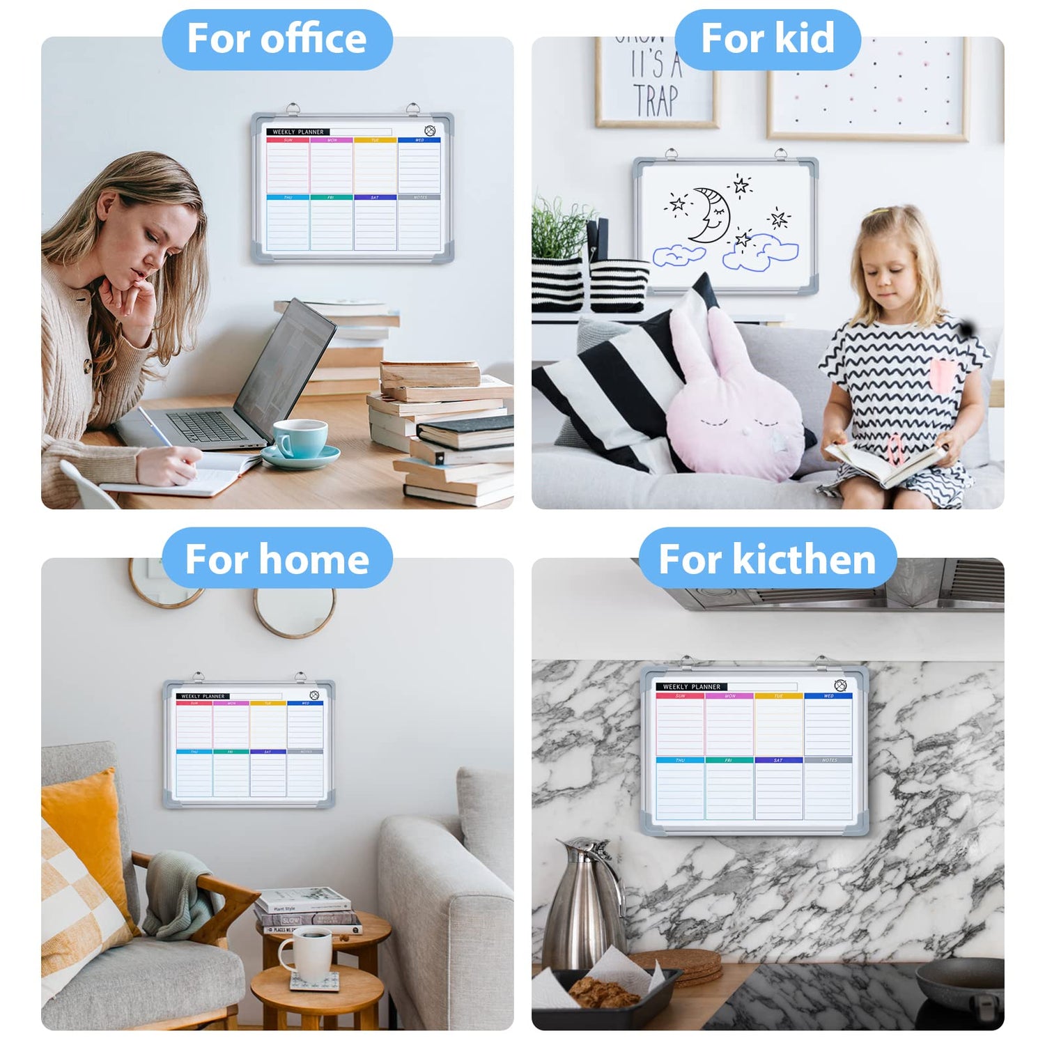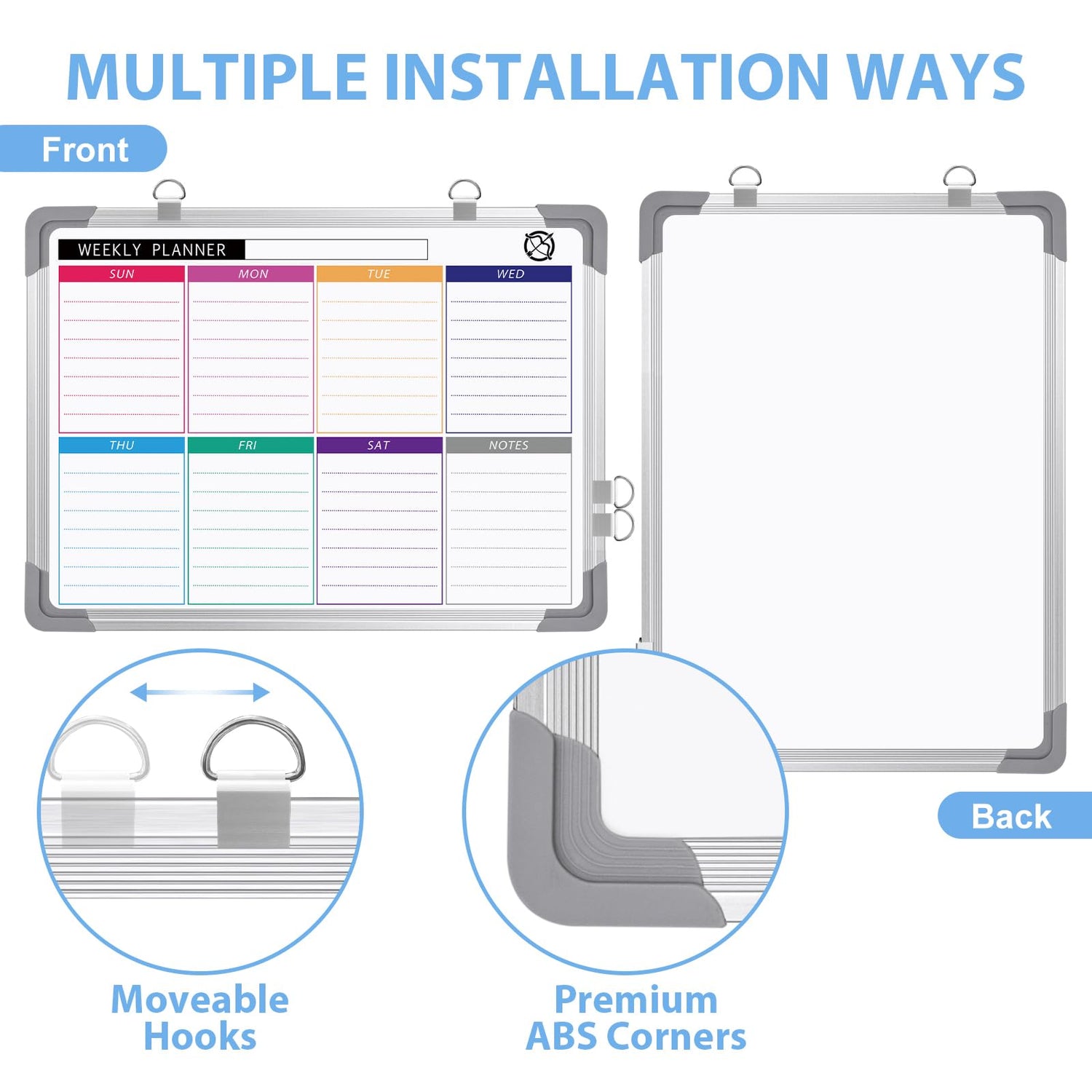 • Mehrzweck-Kalender-Whiteboard: Unser trocken abwischbarer Kalender kann Ihr Leben in Ordnung bringen. Die beidseitige Whiteboard-Oberfläche ermöglicht es Ihnen, zwei Projekte gleichzeitig zu bearbeiten. Der wöchentliche Planer-Whiteboard ist für die Aufzeichnung von Terminen, Erinnerungen, Schulaktivitäten und sozialen Veranstaltungen gedacht, die andere Seite ist leer und bietet zusätzlichen Platz für Notizen oder Heimunterricht.
