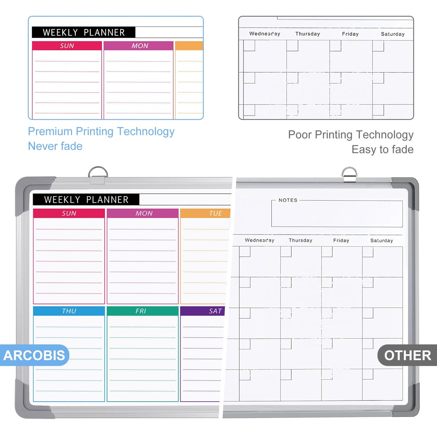 ARCOBIS Whiteboard Wochenplaner Magnetisch, Klein 40x30cm Magnettafel Whiteboard Kalender, Wand HäNgende Doppelseitige Tafel füR Planung, To Do Liste, Zeichnen, Schule, Zuhause, BüRo