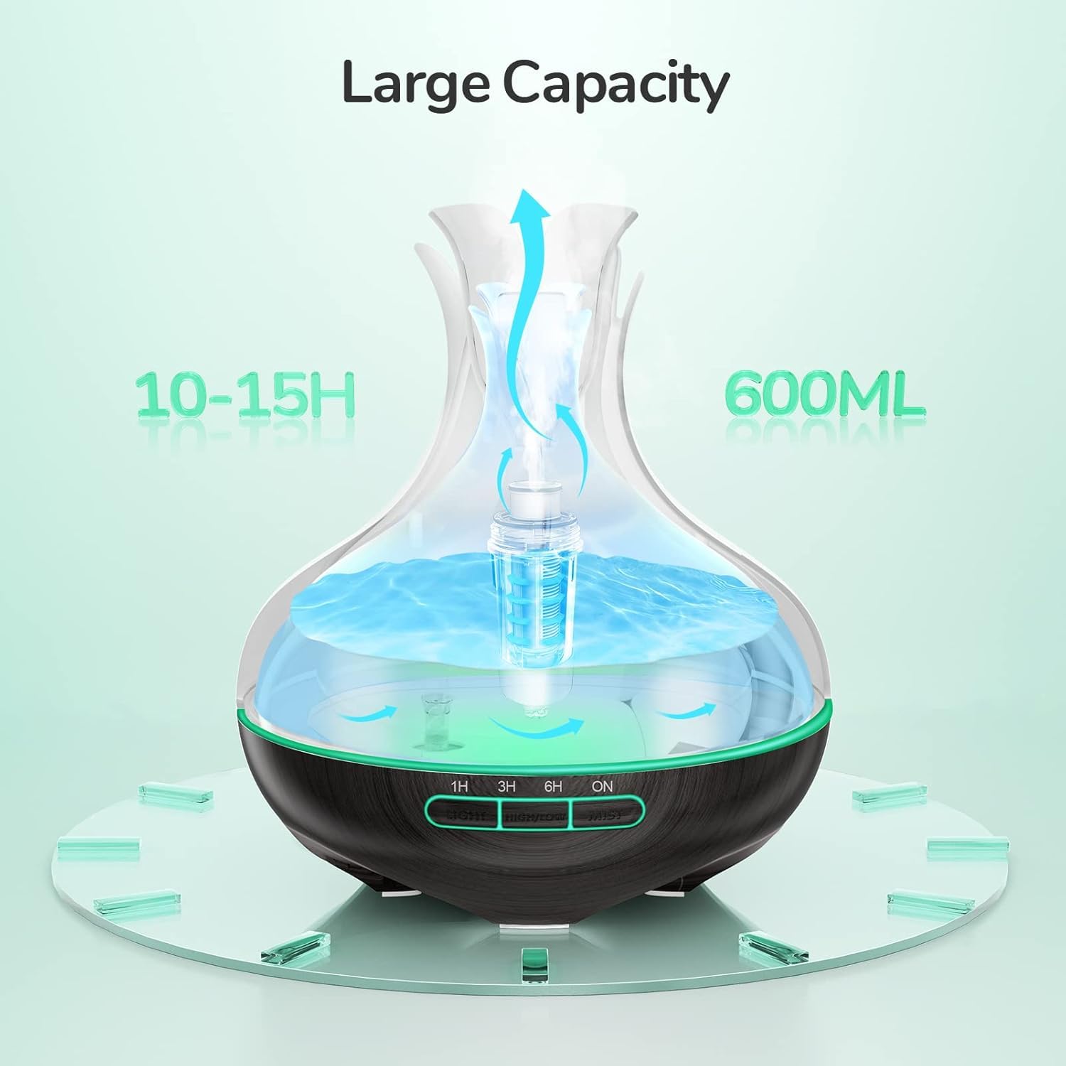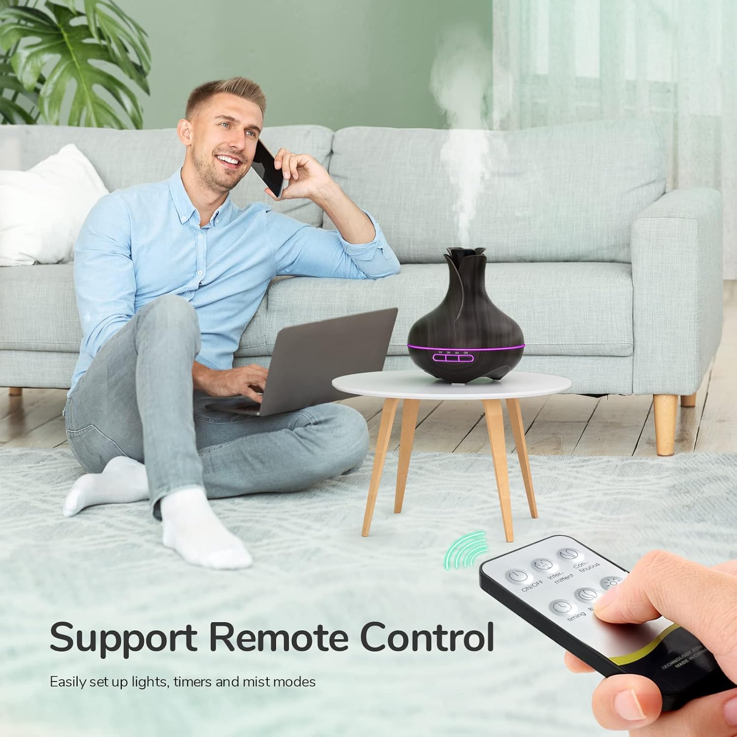Aroma Diffuser, 600 ML Mit 8 Ätherischen Ölen, Luftbefeuchter Schlafzimmer, Luftbefeuchter mit Fernbedienung, 4 Timer, Automatische Wasserlose Abschaltung für Große Räume