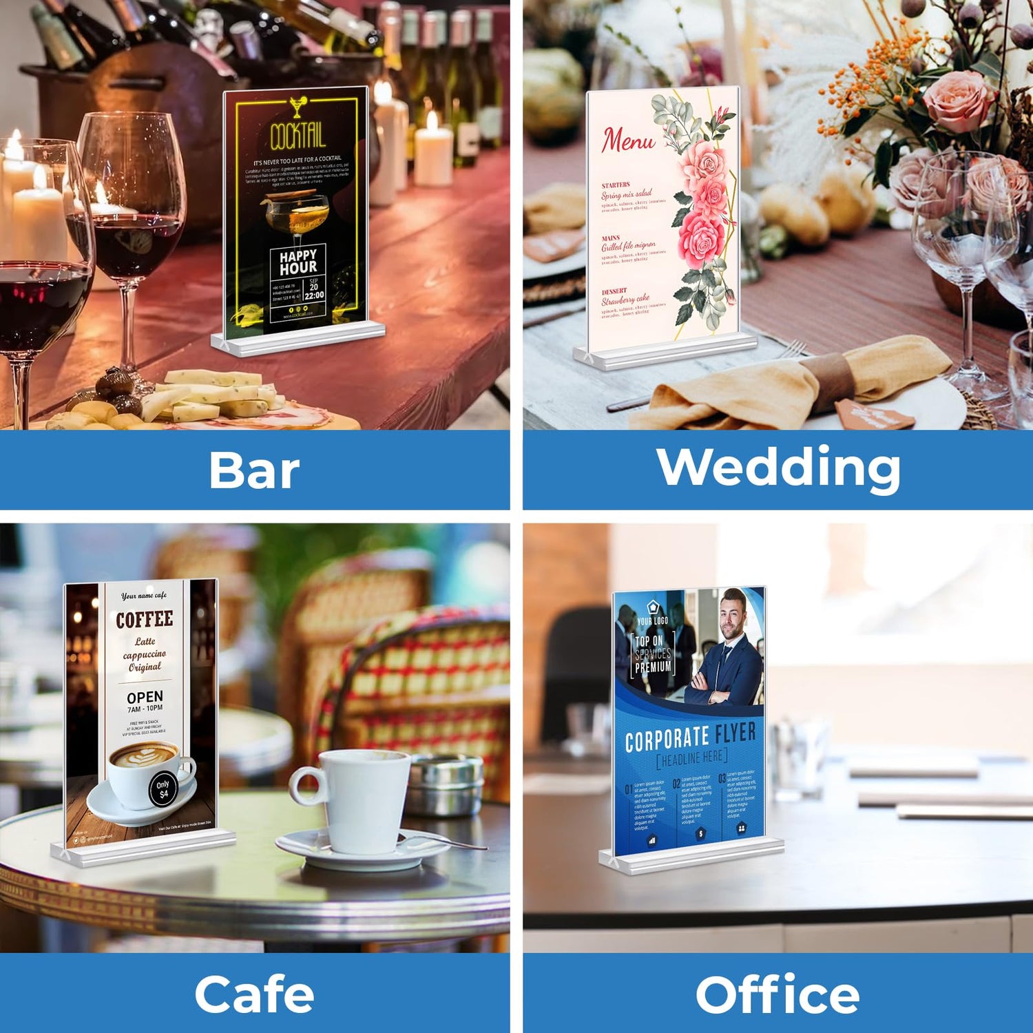 • 【Wide Uses】Unsere 3 Stück A5 Acrylschildhalter sind sehr geeignet für Restaurants, Messen, Empfangsbereiche, Schulen, Hochzeiten, Ausstellungen, etc.