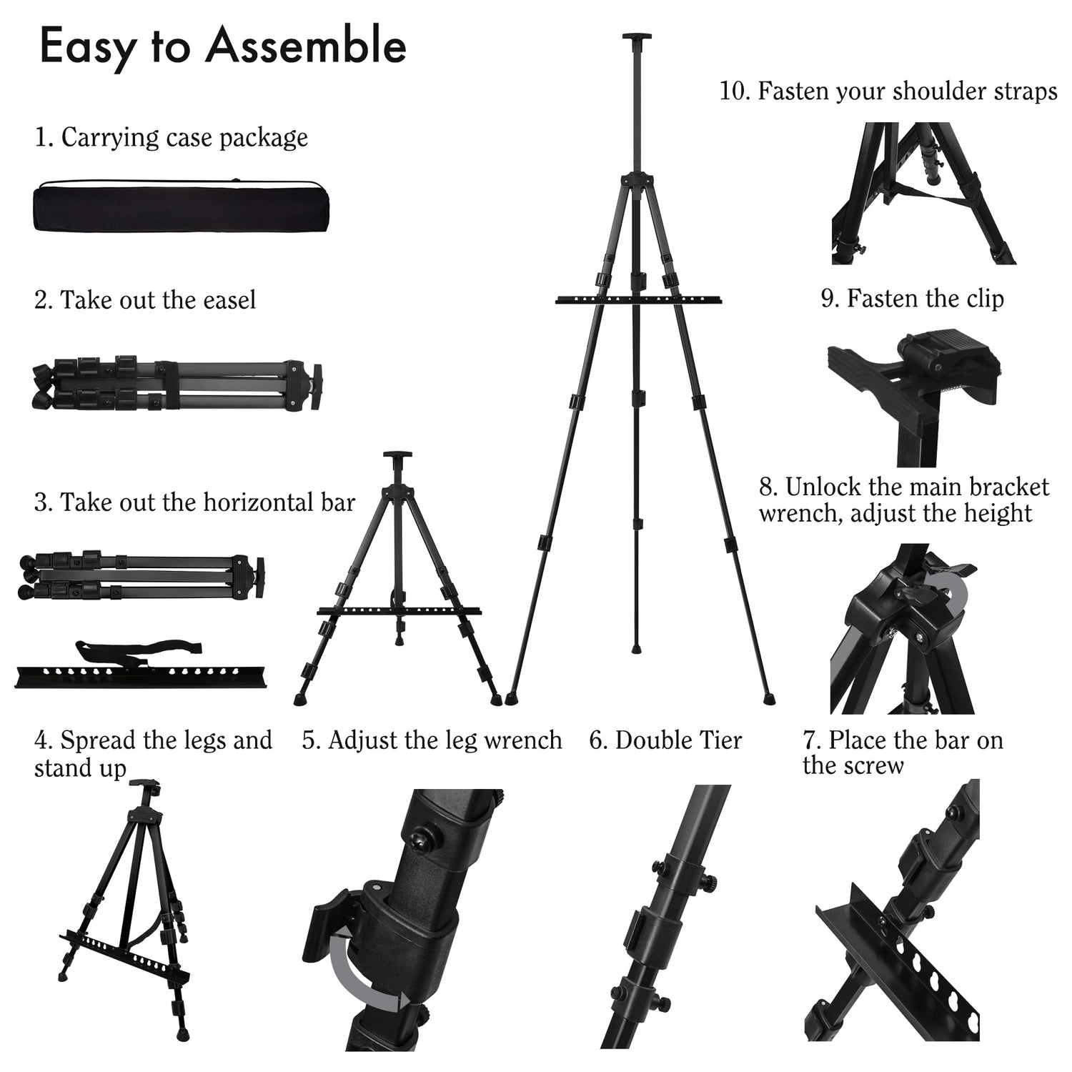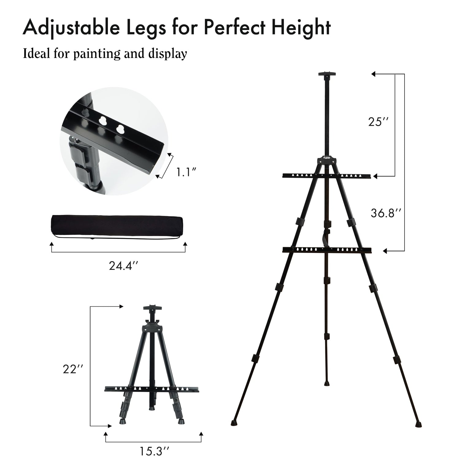 • [Verstellbar[: Die aus robustem Metall gefertigte Staffelei ist stabil und eignet sich für Gegenstände mit einem Gewicht von bis zu 4,5 Pfund. Die verstellbare Höhe reicht von 22 bis 66 Zoll, sodass sie sowohl für große Benutzer als auch für die Verwendung auf dem Tisch bequem ist.