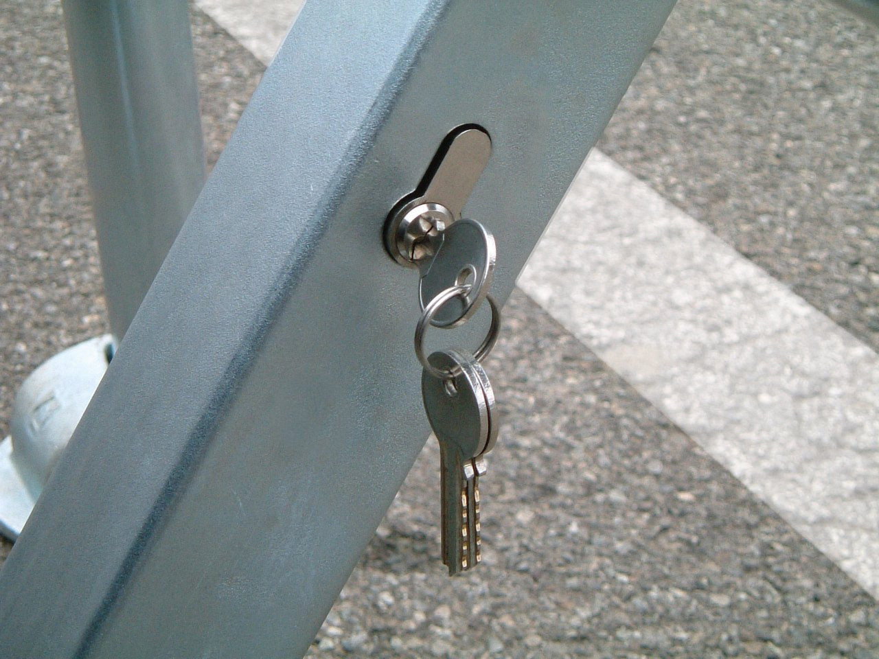 • Langlebig und sicher: Der feuerverzinkte Stahl des Parkplatzsperrbügels schützt effektiv vor Korrosion, und die Stahlgussfüße sorgen für maximale Stabilität. Dank des austauschbaren Halbprofilzylinders ist die Parksperre klappbar für individuelle Schließanlagen anpassbar.