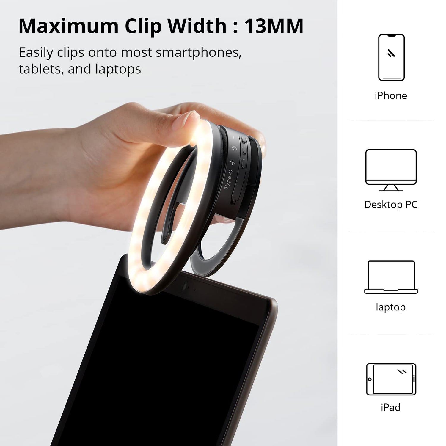 • ✨【Ringlicht für Laptop mit leichtem Clip】 Dieses Selfie-Ringlicht wird mit einem kleinen Clip. Der Clip ist leicht und schadet Ihren Monitoren nicht. Er eignet sich nur zum Aufstecken auf Laptop-Monitoren mit einer Größe von weniger als 1,4 cm. Für Ihre Wahl hat es auch für iMAC OR Mobiltelefon jedes Gerät.