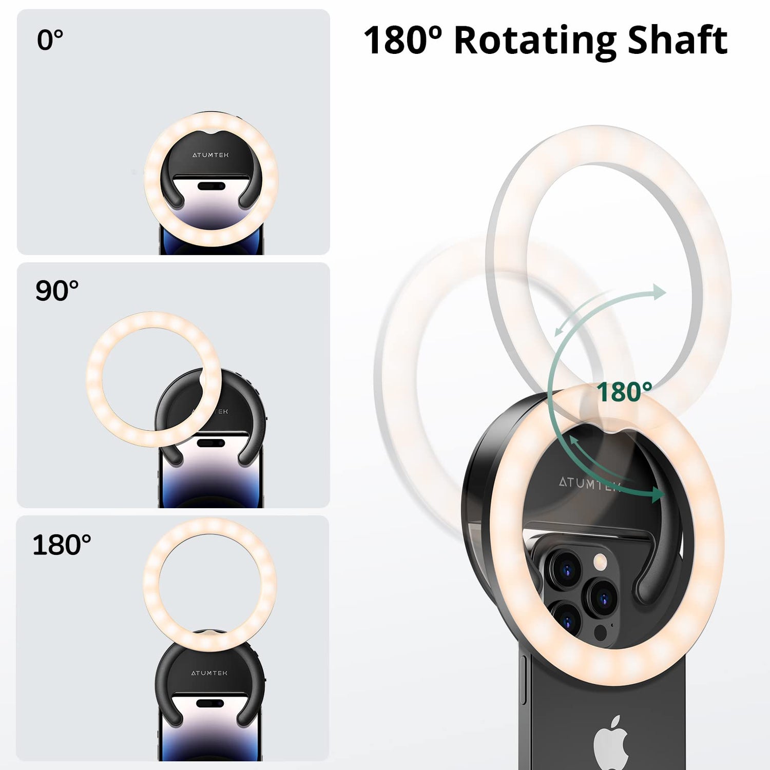 • ✨【Maximieren Sie Ihre Kreativität 】Das ATUMTEK Mini Ringlicht wurde mit einer integrierten Silikon gepolsterten Klammer entwickelt,Kann Ihr Gerät während des Gebrauchs vor Kratzern schützen. Der Drehungsschaft ermöglicht es Ihnen, das Ringlicht um volle 180º zu drehen, um einen besseren Blickwinkel zu erhalten.