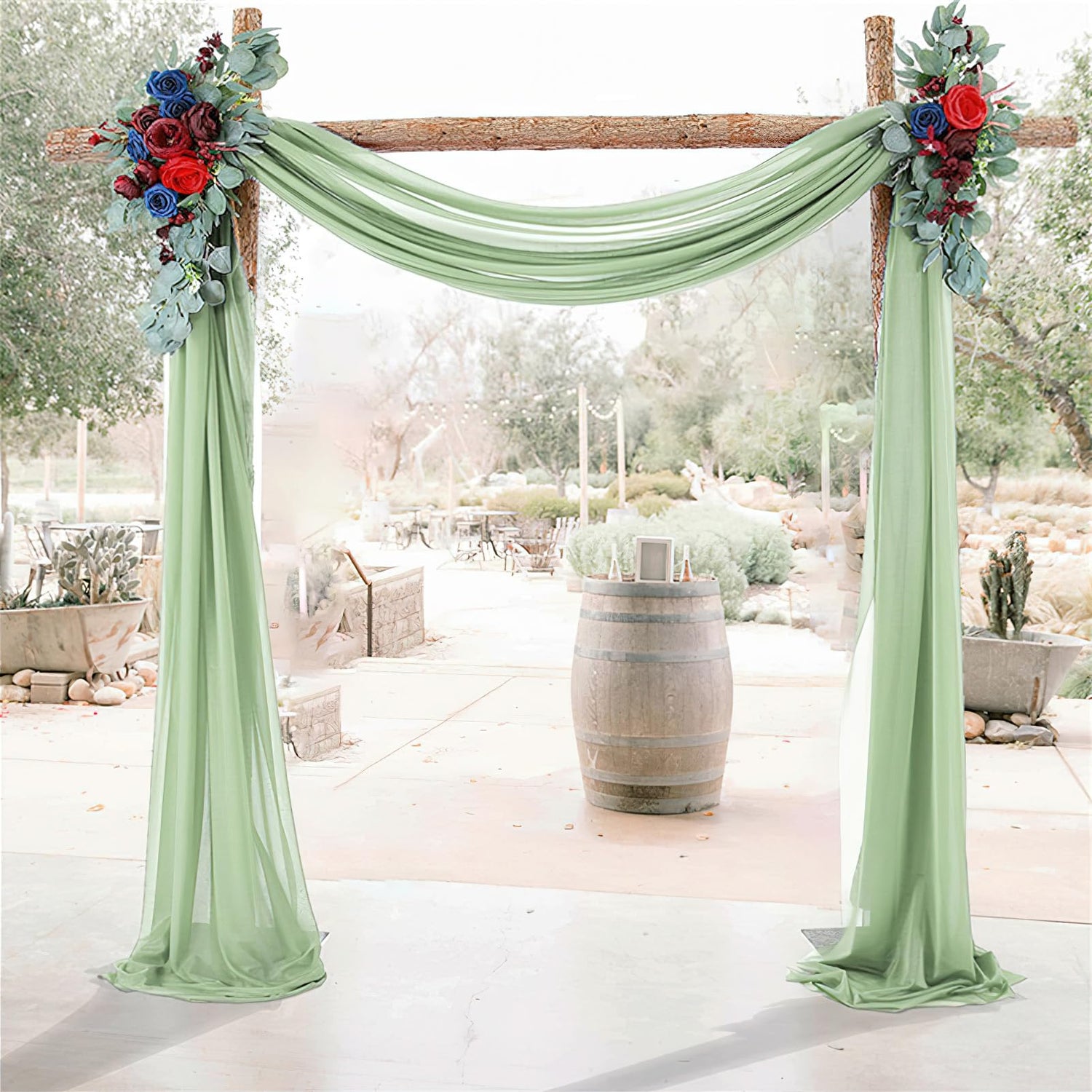 auons Hochzeit Bogen Sheer Vorhänge Hintergrund, 600x75cm Voile Vorhang Chiffon Drapierung, Tüllstoff Vorhänge Arbor Draperie für Hochzeitszeremonie Empfang Party Deckendekor, Salbei Grün, 2 Panels