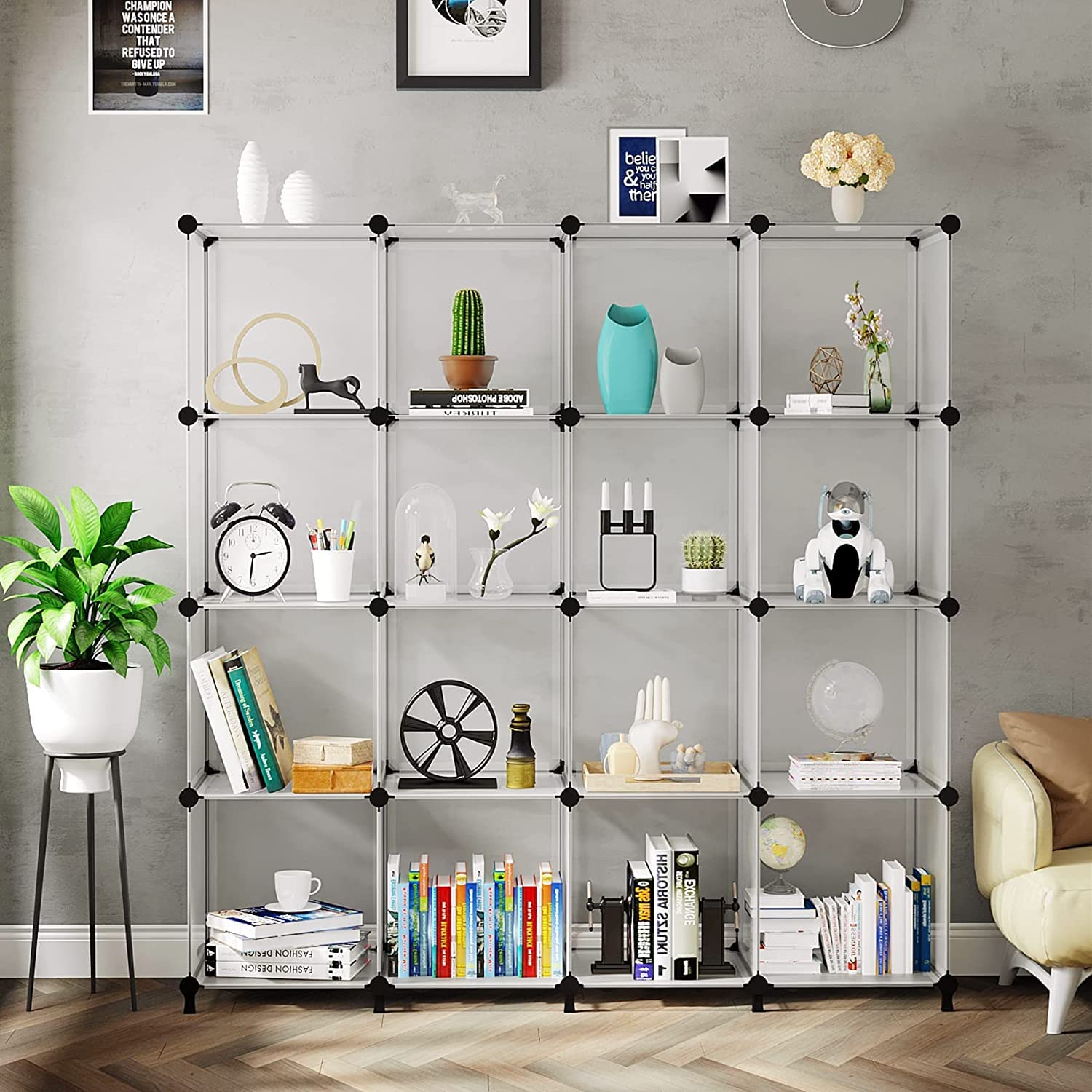 AWTATOS Kleiderschrank mit 16 Würfeln, Storage Shelves, DIY Regal Würfel, PP Steckregal Kunststoff, Kinderregal, Spielzeugregal, Faltschrank, Shelves, Standregal, Weiß ULPZ016