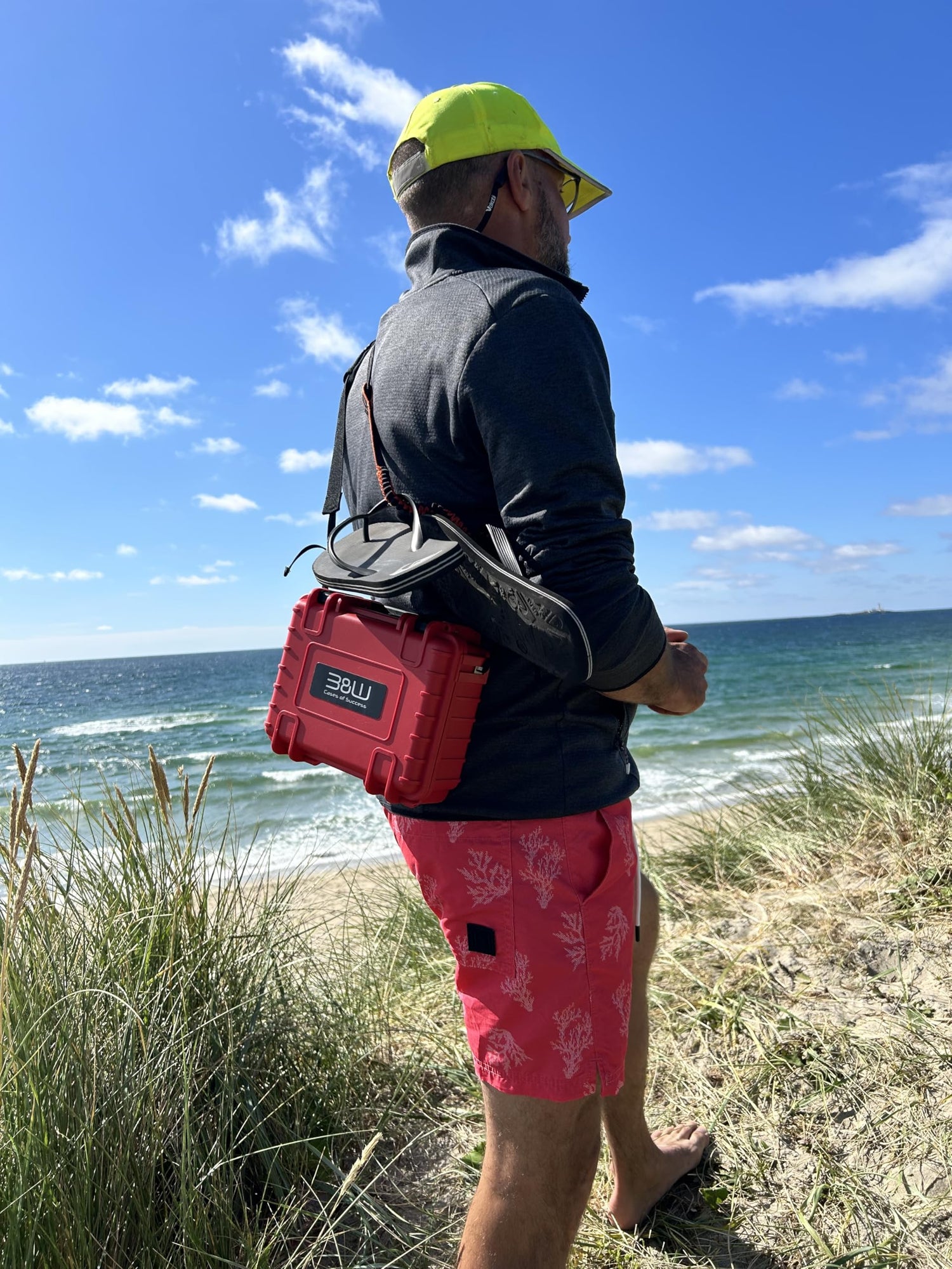 Die outdoor.cases vom Kofferspezialisten B&W International GmbH wurden für den härtesten Outdoor Einsatz entwickelt und unter extremen Bedingungen getestet. Ausgelegt für einen Temperaturbereich von -30°C bis +80°C sind sie stapelbar und 100% wasserdicht nach IP67 Zertifizierung, staubdicht, bruchsicher und unverwüstlich. Das Gewicht des Koffers liegt bei rund 0,56 kg und bietet ein Volumen von 2,3l. Der gummierte Griff ermöglicht einen sicheren Halt beim Tragen. Mit einem Namensschild an der Vorderseite läßt sich der Koffer sehr einfach personalisieren. Durch das automatische Druckausgleichsventil an der Vorderseite kann der Koffer problemlos in einem Flugzeug mitgenommen werden. Das Ventil ist so konzipiert, dass es Luft rein läßt, während es Wasser vor dem Eindringen abhält. Der Koffer beinhaltet zwei herausnehmbare Lagen vorgestanzten Würfelschaum, einen dünnen Bodenschaum, sowie einen Noppenschaum im Deckel. 1 Lage Würfelschaum: 205 x 145 x 25 mm (Würfel 12 x 12 x 25 mm) 1 Lage Würfelschaum: 205 x 145 x 22 mm (Würfel 12 x 12 x 22 mm) 1 Bodeneinlage: 200 x 140 x 13 mm Optionales Zubehör - Tragegurt / Schultergurt (Art. Nr. CS/500)