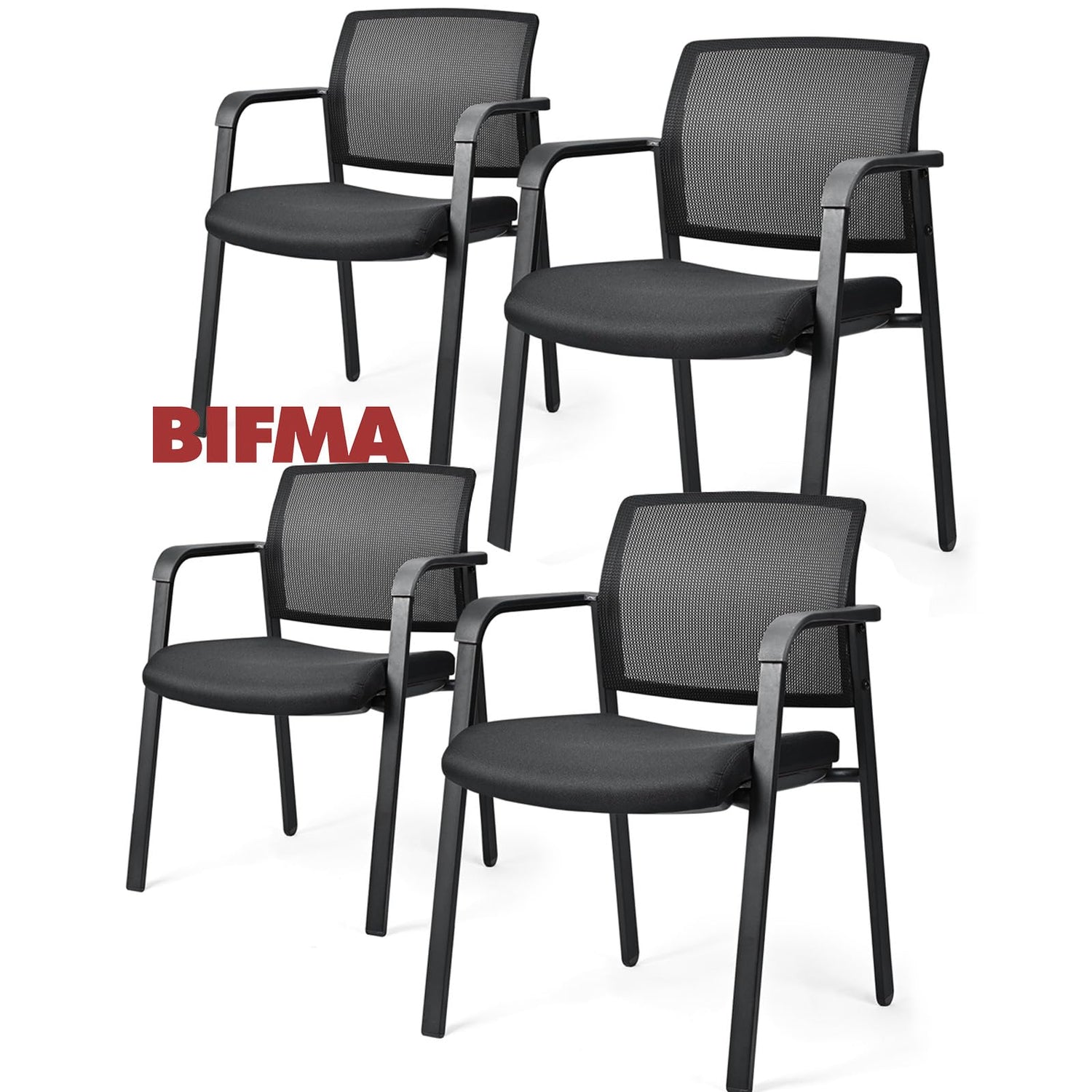 BASETBL Besucherstuhl, Konferenzstuhl für alle Fälle, Bürostühle mit festen Armlehnen, BIFMA-zertifizierter Stuhl, Stapelstuhl, 4er-Pack, Schwarz