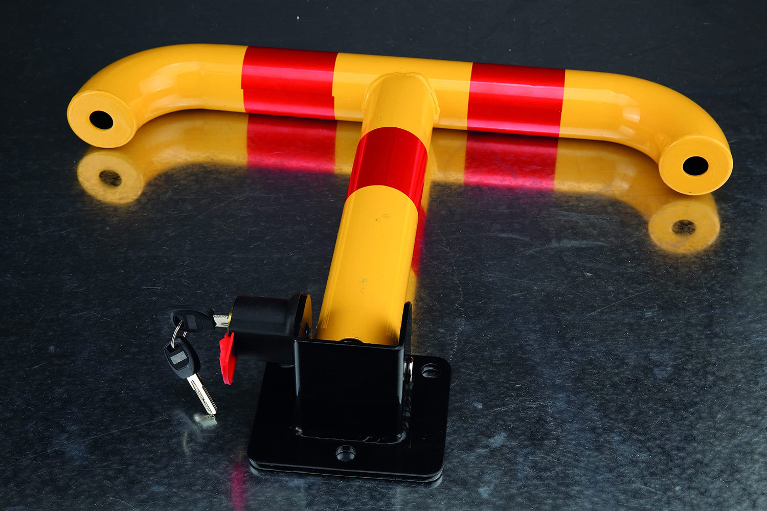 • ✅ Absperrpfosten mit 2 Schlüsseln in Warnfarben / Signalfarben für größere Aufmerksamkeit | Farbe: Gelb-Rot gestreift