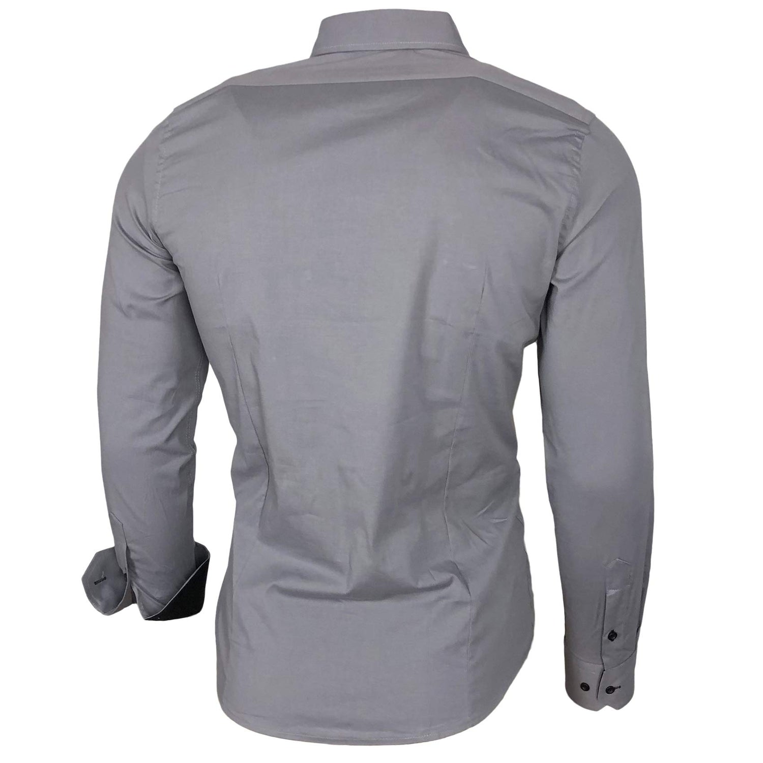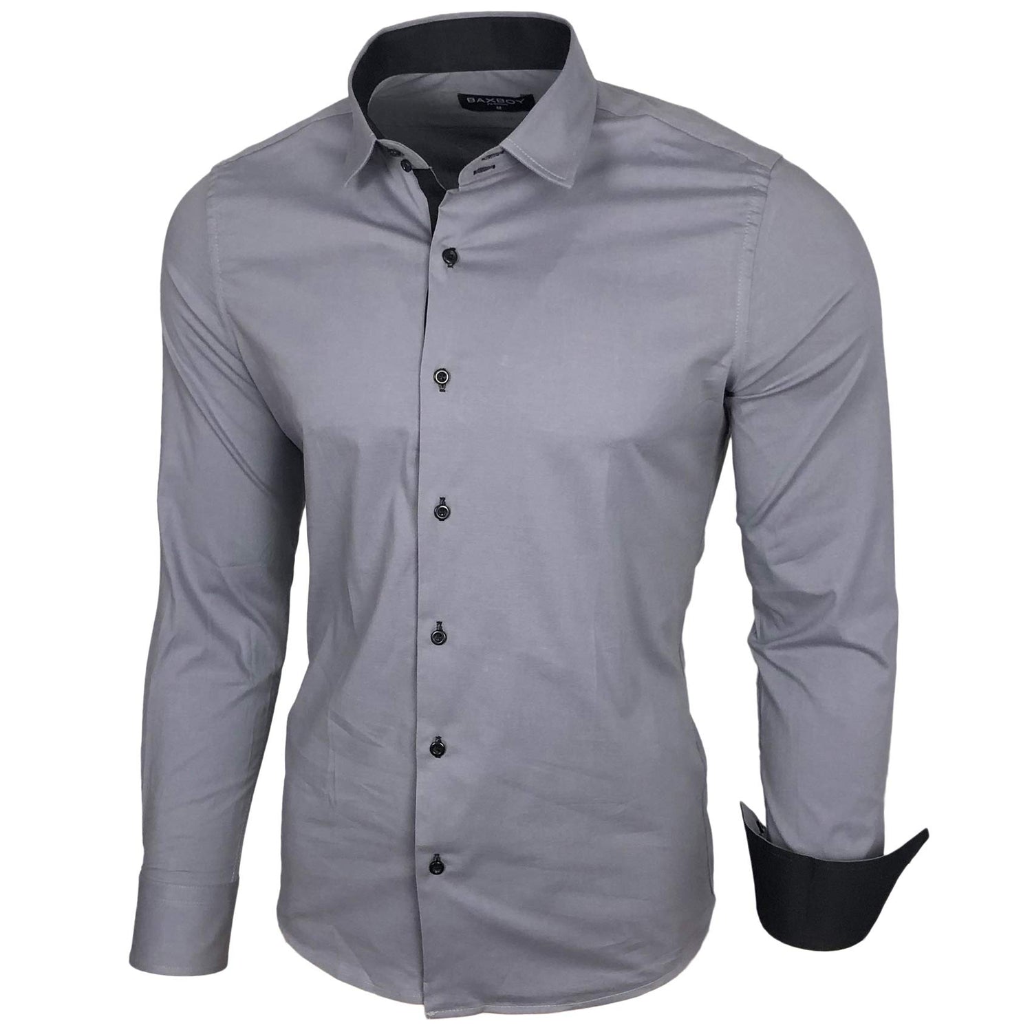 Baxboy Herren-Hemd Langarm/Business Freizeit Hochzeit/Bügelleicht/Slim-Fit/Anzug Kentkragen Hemd B-500, Farbe:Grau, Größen:M