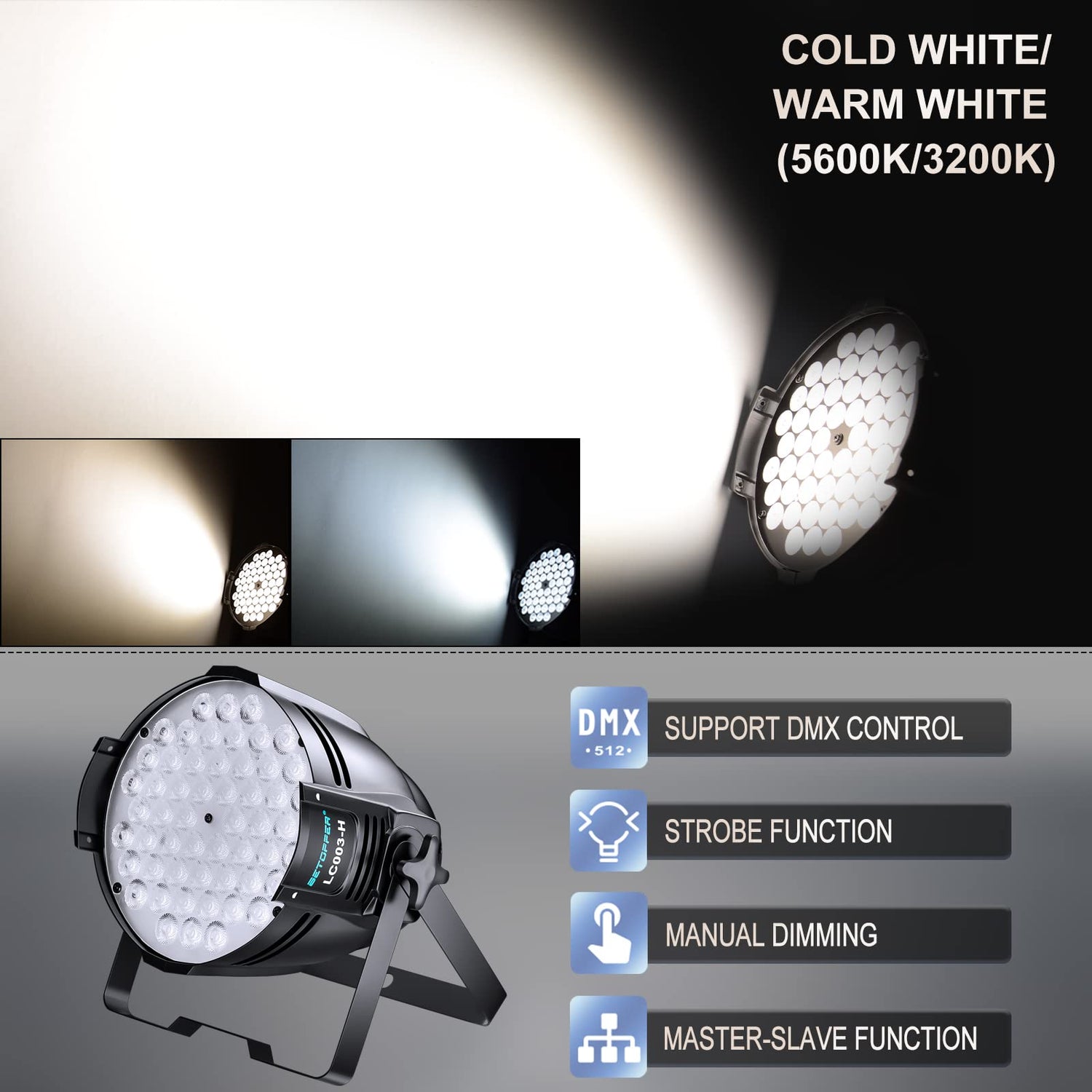 • ✅Superhelles Bühnenlicht: Betopper Par Light LC003 ausgestattet mit 54 X 2W LED-Lichtkugel mit 0-100% Helligkeitseinstellung, seine hell genug für jede Anwendung. Kaltweiß/Warmweiß (5600K/3200K) reine Lichtquelle, ideal für verschiedene Anwendungen, wie Kirche Veranstaltung, Hochzeit, Home Party, Dekoration, Pool Party, Bühnenbeleuchtung.