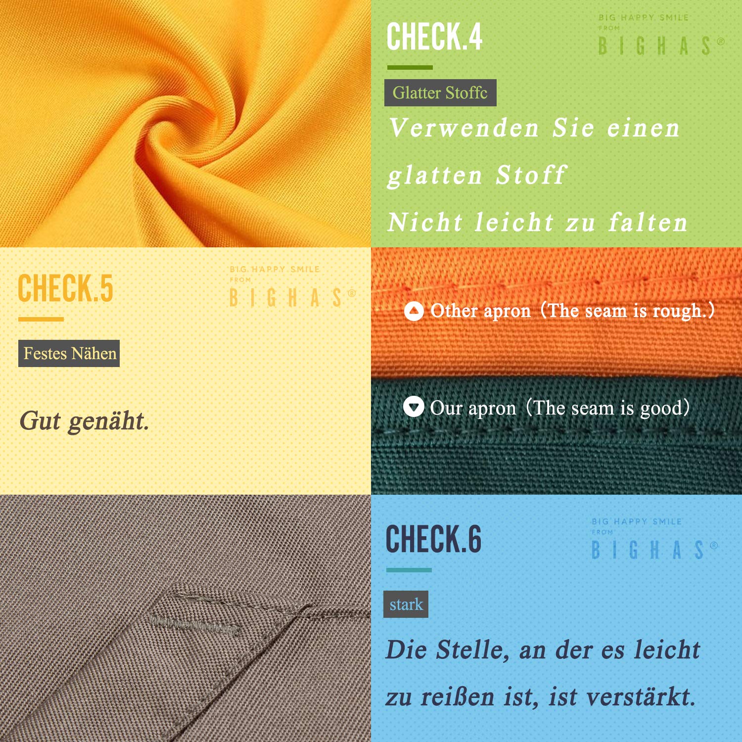 Beim Kochen hassen wir Fett- und Essensflecken auf unserer Kleidung. Unsere Schürze kann Sie davor schützen. Die Schürze ist weich und tragbar aufgrund des guten Materialverhältnisses und der guten Qualität. Die Größe, das verstellbare Nackenband und die langen Bänder machen diese Schürze für die meisten Menschen geeignet. In der Mitte der Schürze haben wir eine große Tasche: Sie können Ihr Handy in der Tasche halten und Musik hören oder ein Rezept darin aufbewahren. Erleben Sie Spaß am Kochen.