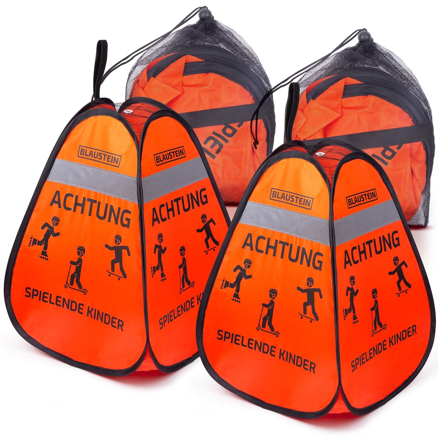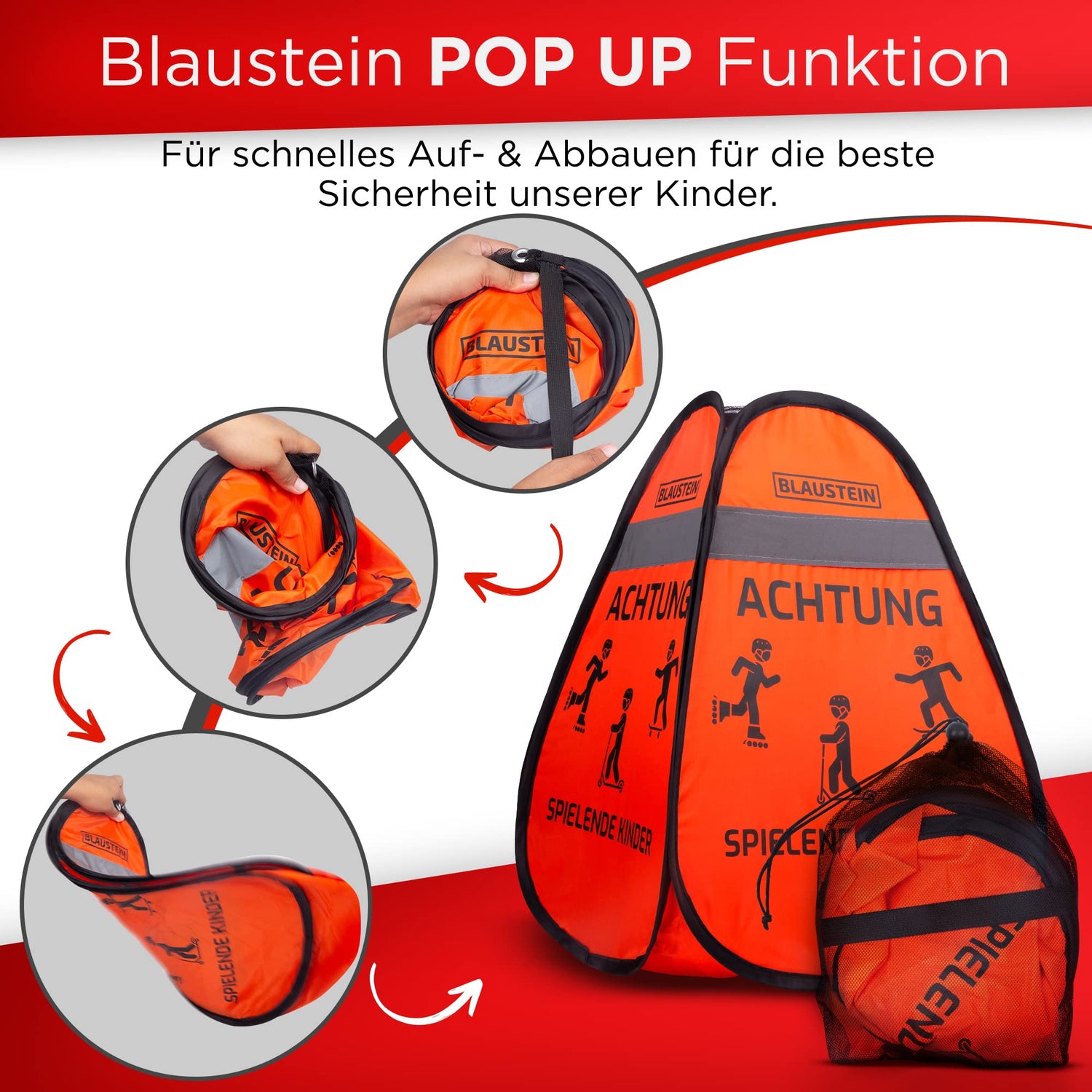• SCHNELLER AUFBAU & ABBAU - Der Blaustein Warnwürfel ist kinderleicht und schnell aufgebaut, einfach aus dem Tragebeutel nehmen und loslassen. Zum Abbauen einfach an zwei Enden festhalten und drehen, schon ist der Warnwürfel wieder klein und kann verstaut werden.