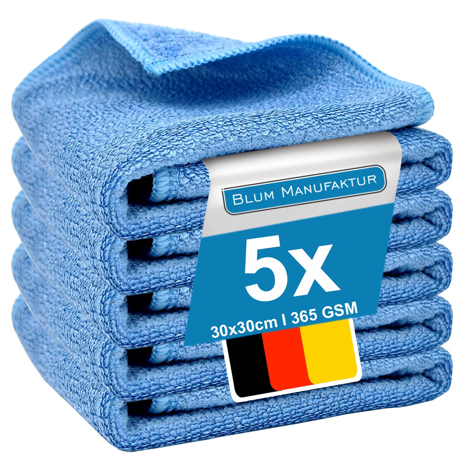 BLUM MANUFAKTUR 5er Set Mikrofasertuch (30x30 cm) - 5X Mikrofasertücher - Super Soft 365 GSM Reinigungstücher für Auto, Bad, Küche