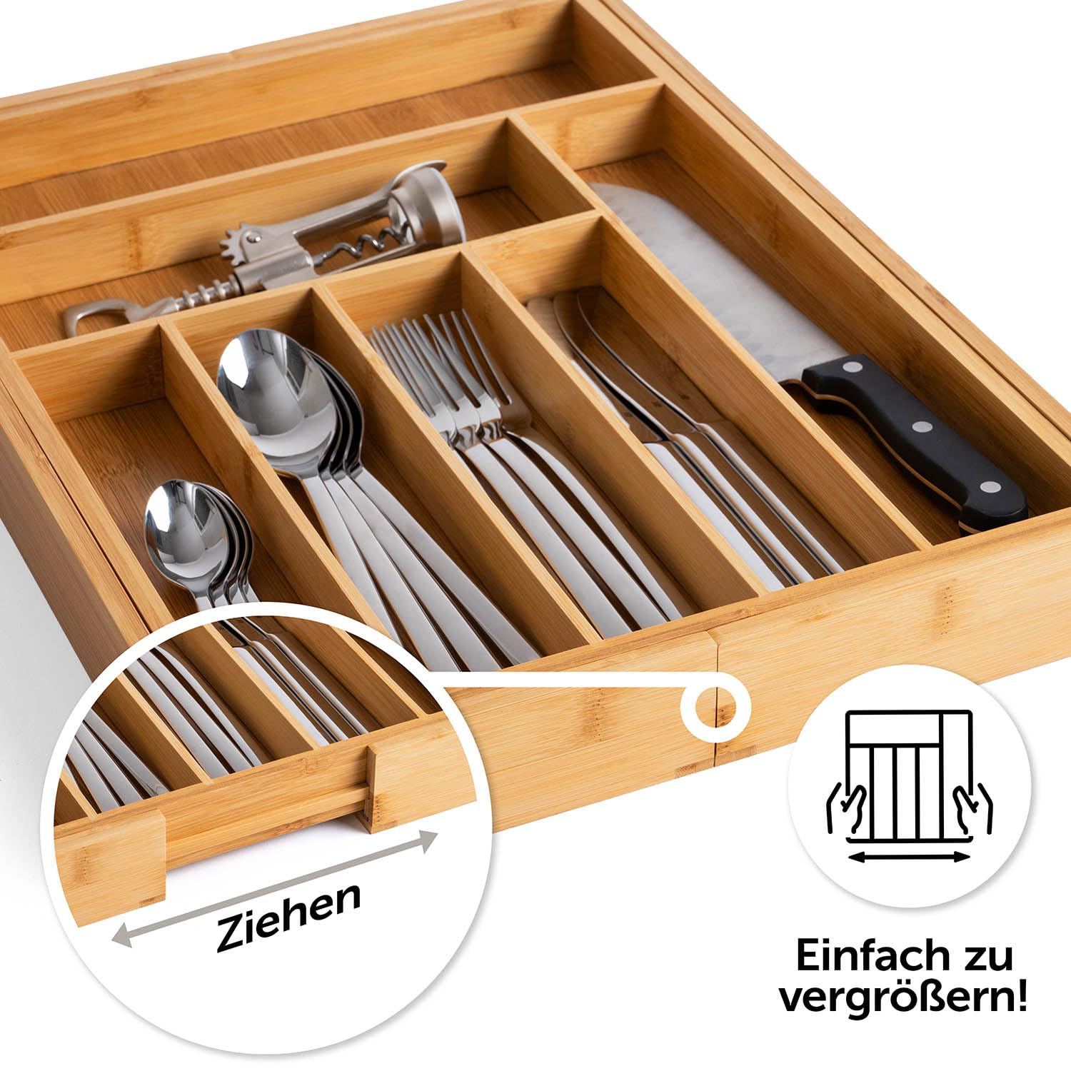 Blumtal Besteckkasten aus Bambus - größenverstellbarer Schubladentrenner Küche - Besteck Organizer 5 bis 7 Fächer - ausziehbare Schublade für Küchenschubladen - Organizer Küche Besteck in medium