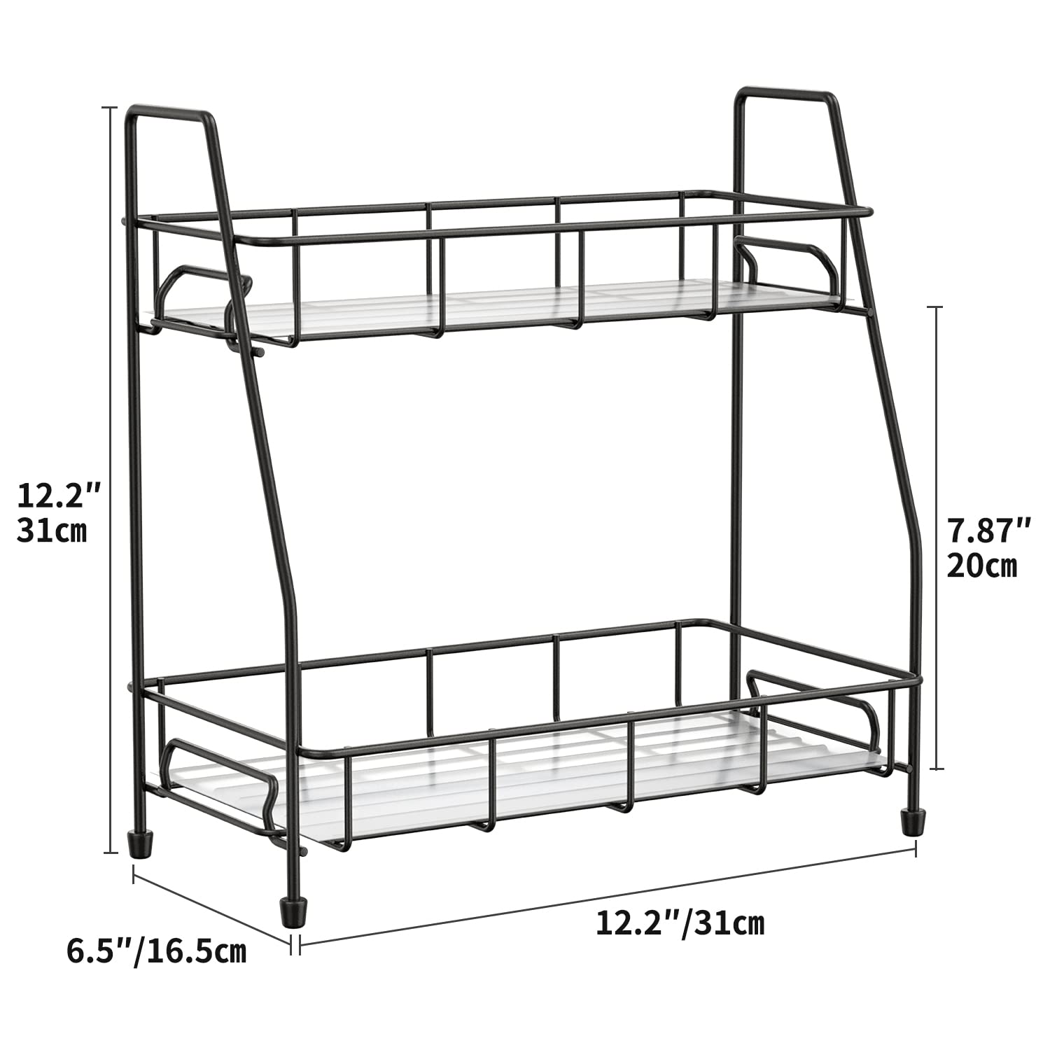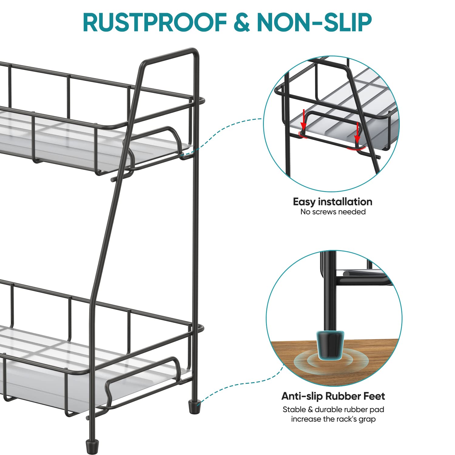 BOKIOVIN 2 Etagen Gewürzregal Stehend Organizer,Metall Gewürzständer Küchenregal Stehend Arbeitsplatte Gewürzhalter Aufbewahrung für Küche Schrank Bathroom,Schwarz