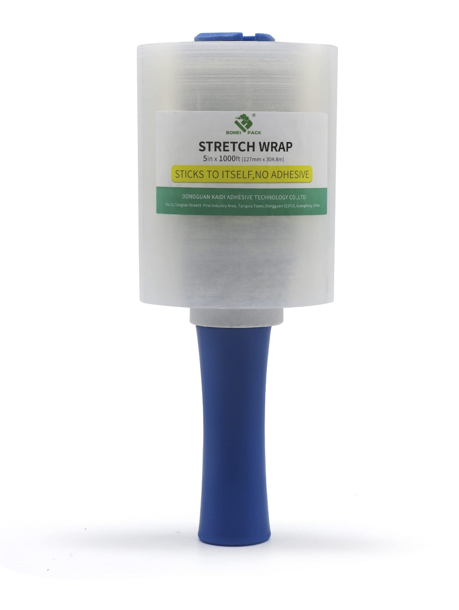 BOMEI PACK Mini Stretchfolie, Handfolie Wickelfolie, 20my x 127mm x 300m, Packfolie Transparent, 4 Rollen mit 1 Griff