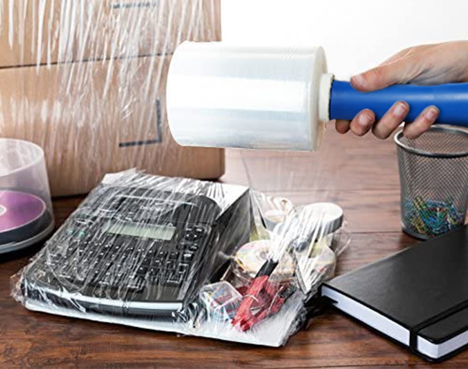 • Einfach zu verwenden: Wenn Sie den Kunststoff griff halten, kann sich die Stretchfolienrolle drehen.