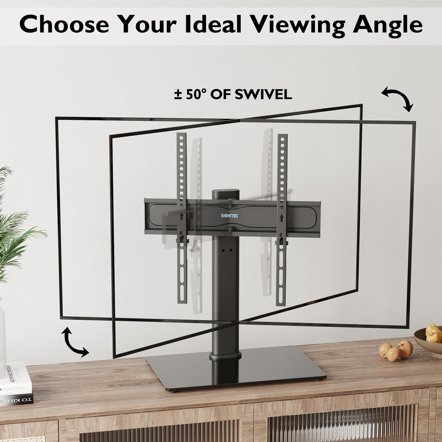 BONTEC TV Standfuss TV Ständer Schwenkbar für 26-55 Zoll LCD LED OLED Plasma Flach & Curved Fernseher bis zu 45 KG, Höhenverstellbar & Stabil Max.VESA 400x400