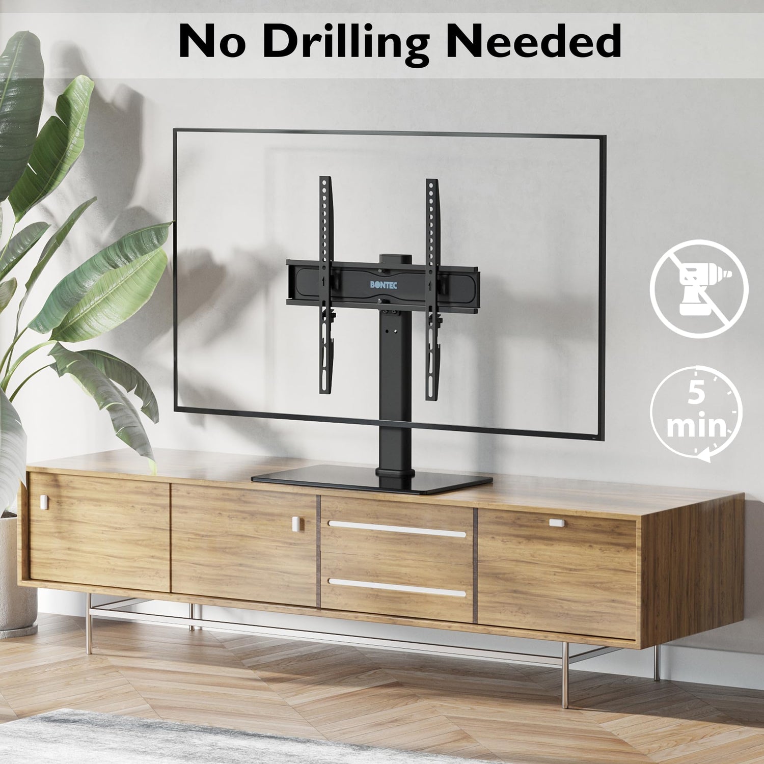• EINFACHE MONTAGE - Kommt mit allen notwendigen Hardware- und Installationsanweisungen. Sie müssen nicht in Ihre Wand bohren; Installieren Sie den TV-Ständer ohne Probleme.