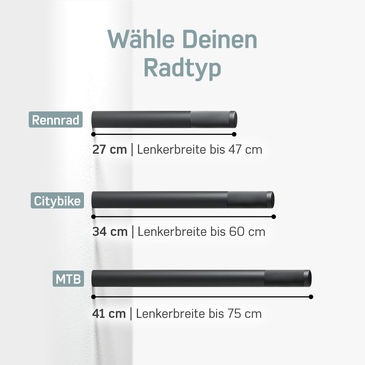 • FÜR JEDEN FAHRRAD TYP - Diese Fahrrad Wandhalterung gibt es für jeden Bike-Typ in der passenden Größe. Der Fahrrad Wandhalter kann als Rennrad Wandhalter genutzt werden, aber auch als MTB Wandhalterung