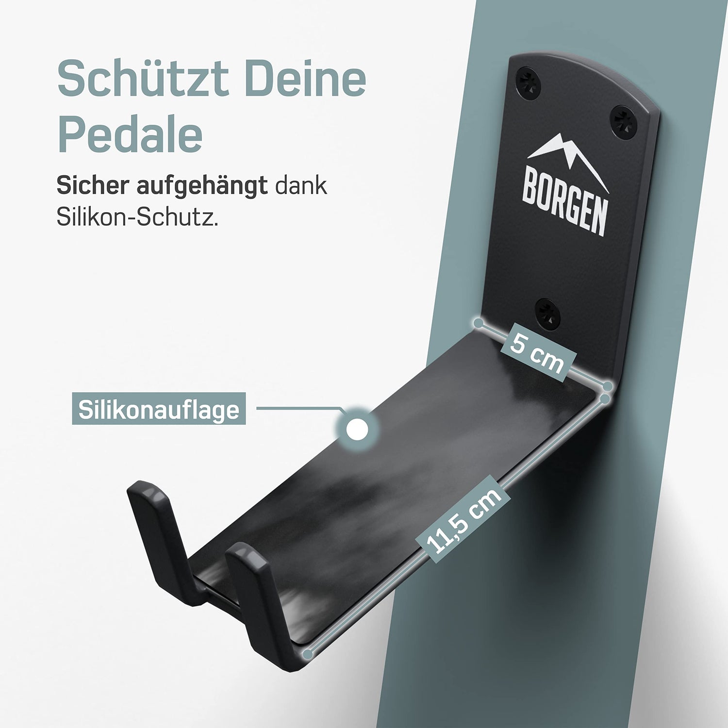 Borgen Fahrrad Wandhalterung mit 30 kg Tragkraft - 3er Set -Pedal Fahrradhalterung Wand für E-Bike, MTB und Rennrad
