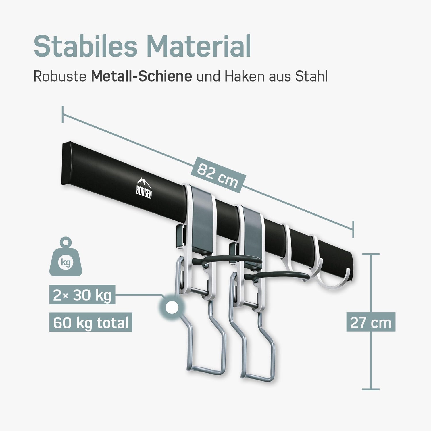 • Platz in der Garage - Noch nie war Ordnung so einfach. Die Wandhalterung von Borgen schafft neuen Platz in der Garage, da Fahrräder nicht mehr herumstehen. Perfekt für 2 Fahrräder plus Zubehör.