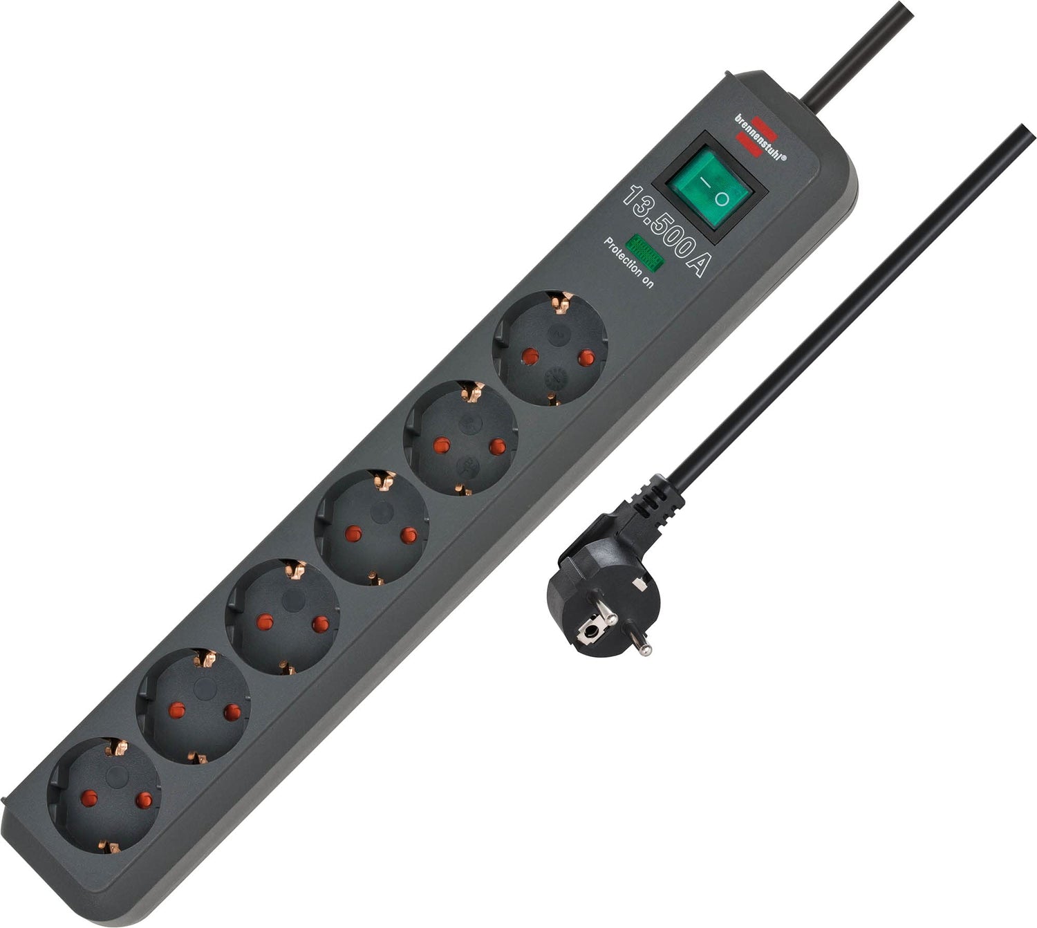 Brennenstuhl Steckdosenleiste 6-Fach mit Überspannungsschutz und 1,5m Kabel (Eco-Line Mehrfachsteckdose mit Schalter und erhöhtem Berührungsschutz) anthrazit