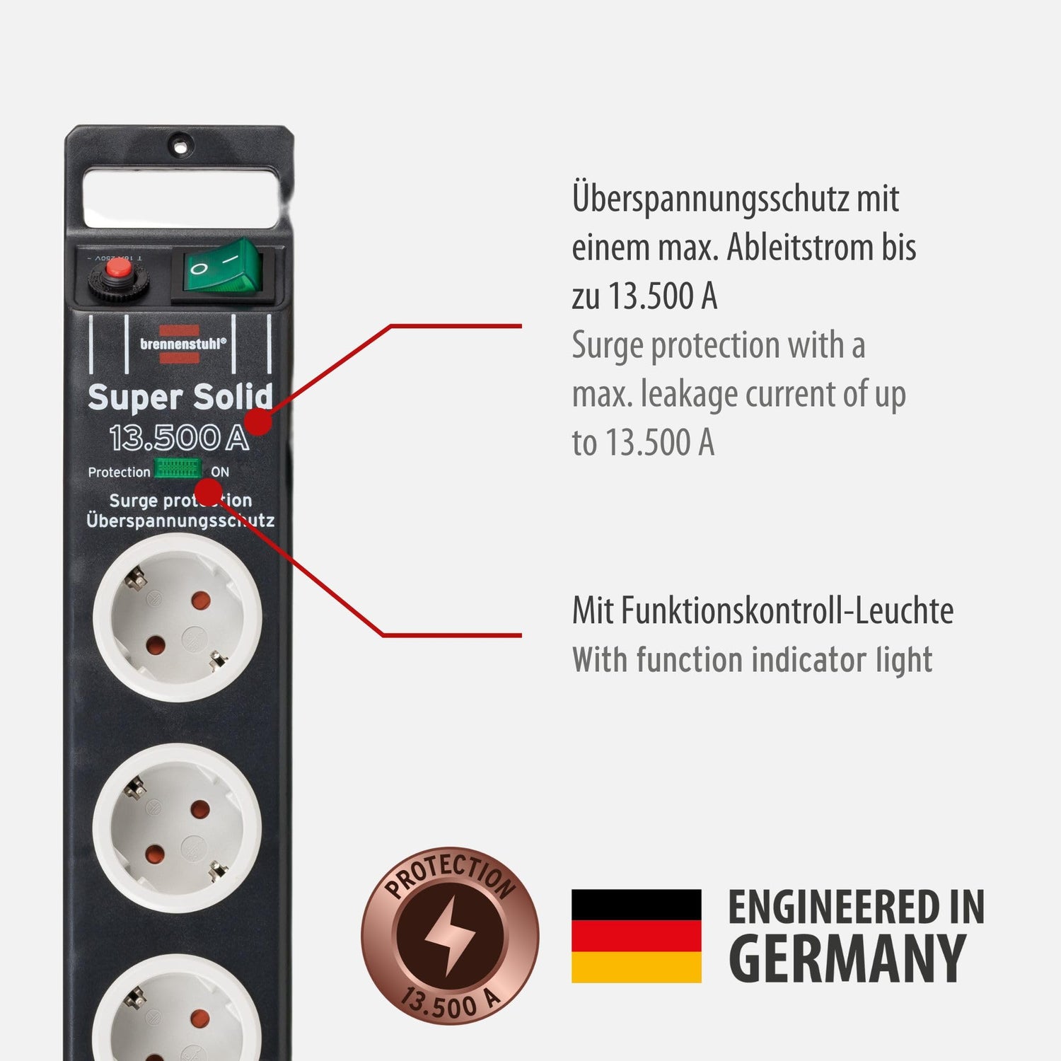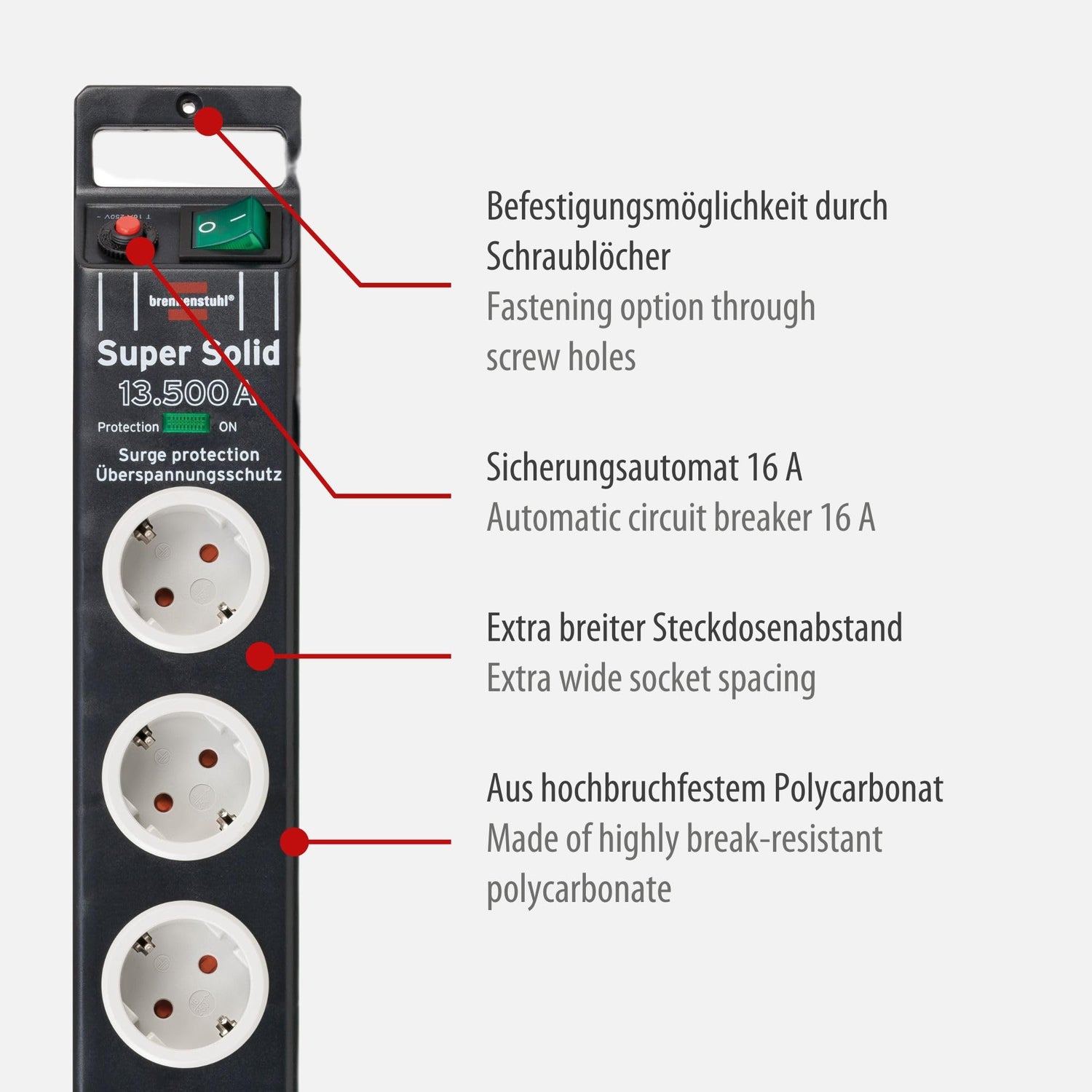 • Lieferumfang: 1 x Super-Solid Steckdosenleiste mit Blitzschutz in der Farbe schwarz mit lichtgrauen Steckdosen - in bester Qualität von brennenstuhl