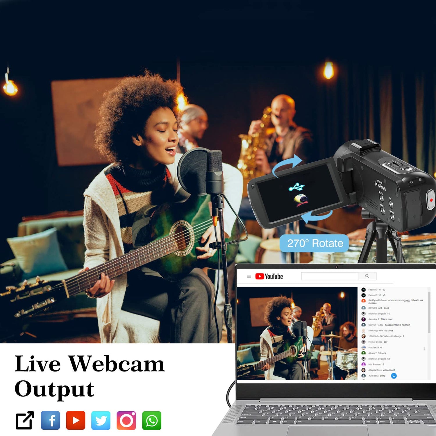 • YouTube-Vlogging-Kamera mit Webcam für Live-Streaming und Videoanrufe: Dieser Camcorder zeichnet 1080P-HD-Videos auf und wird mit einem Mini-USB-Kabel geliefert, um eine direkte Verbindung zu Ihrem Laptop für YouTube-, Facebook- und Live-Streaming herzustellen. Sobald die Verbindung hergestellt ist, wählen Sie einfach „PC-Kamera“, und Ihr YouTube- oder Instagram-Livestream erkennt die Kamera automatisch.