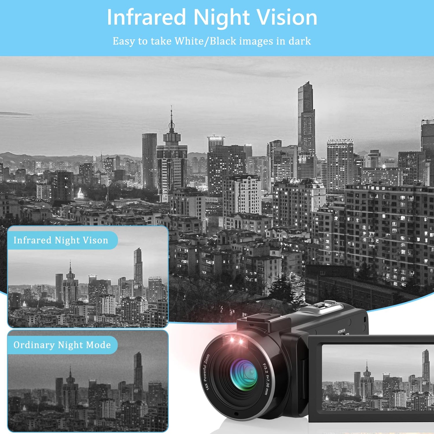 CAMKORY Videokamera Camcorder FHD 1080P 36MP IR-Nachtsicht Kmera für YouTube 3.0'' Drehbarer IPS Bildschirm 16X Digitalzoom IR Nachtsicht Digitalkamera