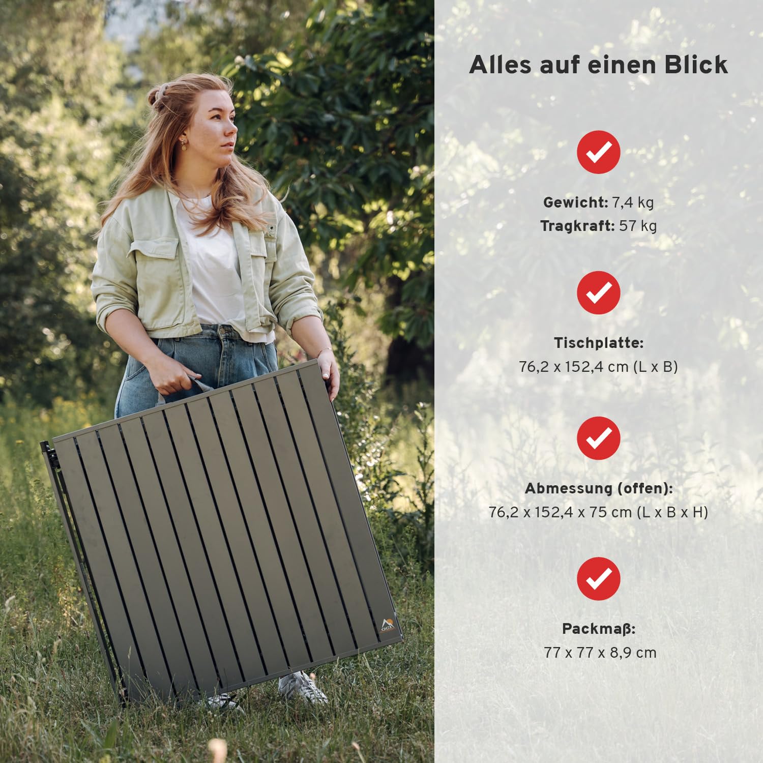 CAMPWERK Alu Camping Tisch, Campingtisch XL, Klapptisch, Gartentisch, Camping Möbel, Faltbar & Tragbar, Leichtes Aluminiumgestell, Ausklappbar, Für 2-6 Personen, 150 x 76 cm