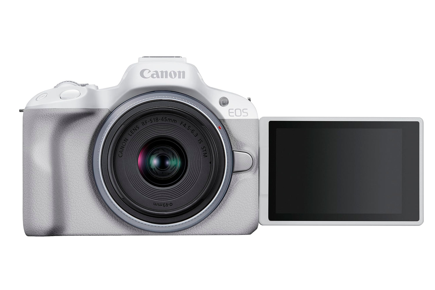 Canon EOS R50 Systemkamera + RF-S 18-45 is STM Objektiv - Spiegellose Kamera (Digitalkamera mit Autofokus und Motiverkennung für Augen Tiere Fahrzeuge, 4k Videokamera, 15 Bilder pro Sekunde) weiß