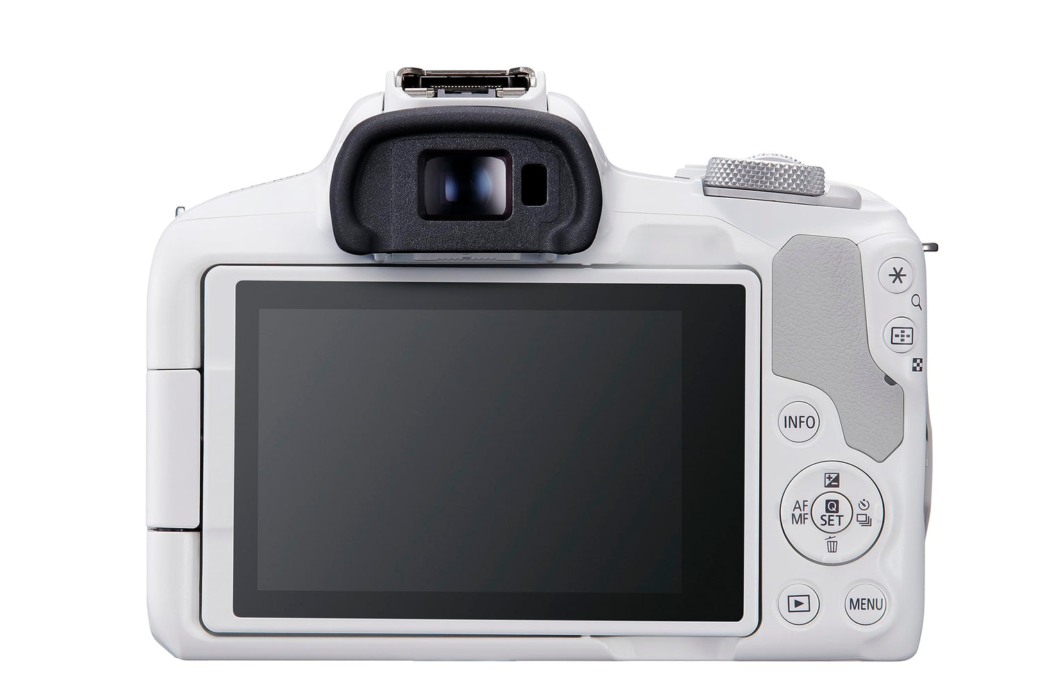 • LEICHT & KOMPAKT - Das leichte Design und der komfortable Griff der EOS R50 sorgen für eine flexible und sichere Handhabung der Kamera.ivity, a 3.5mm mic jack, Multi-Function Smart Shoe, & UVC functionality to use camera as a webcam without the need of additional software.RF lens compatibility and EF lenses via adapter.