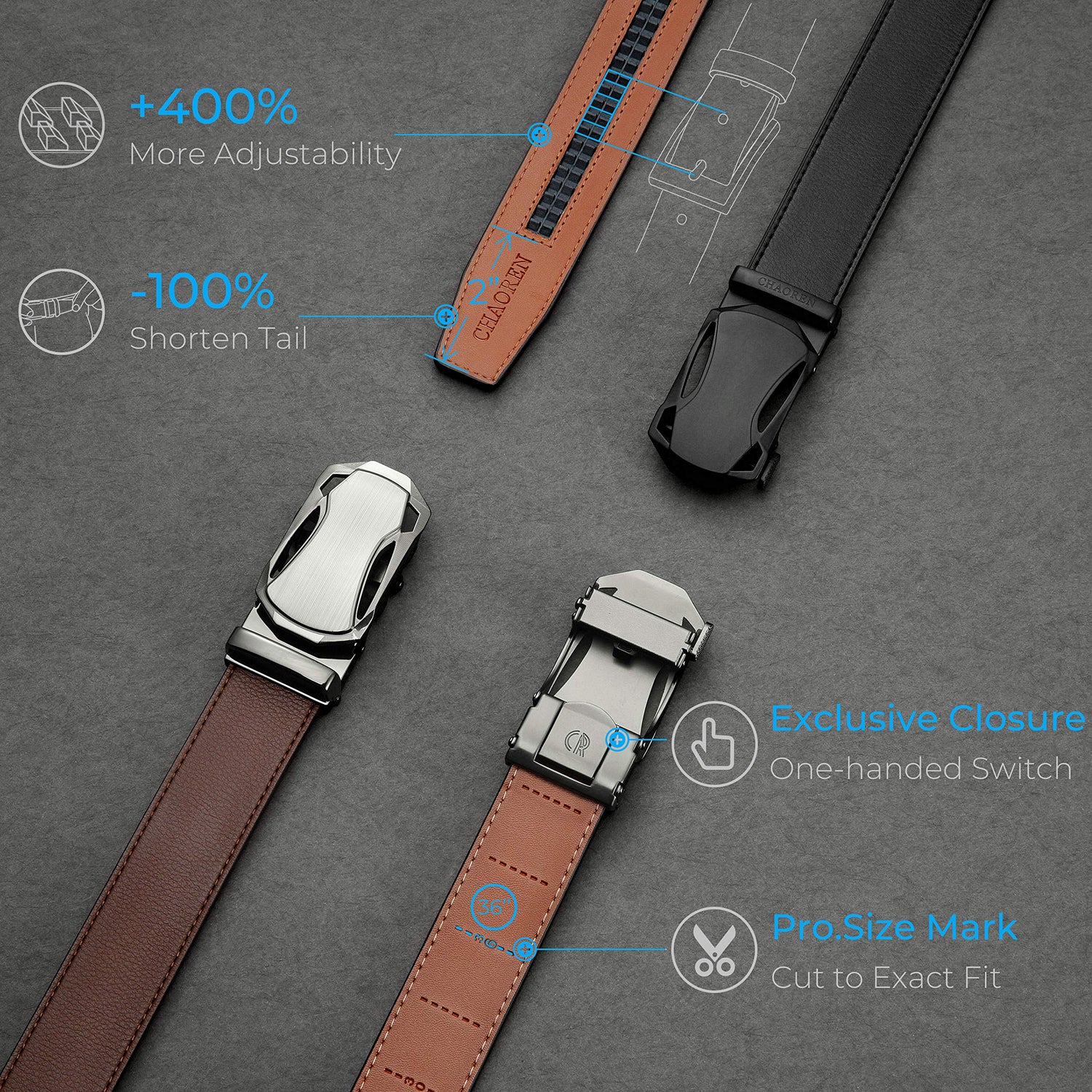 • CHAOREN Gürtel Herren Automatik Schnalle Gürtel Leder Ratsche Gürtel für Männer Breite 35mm (1 3/8 Zoll) Geeignet für Anzughosen und Jeans. Die besten Herren Bekleidungsaccessoires.