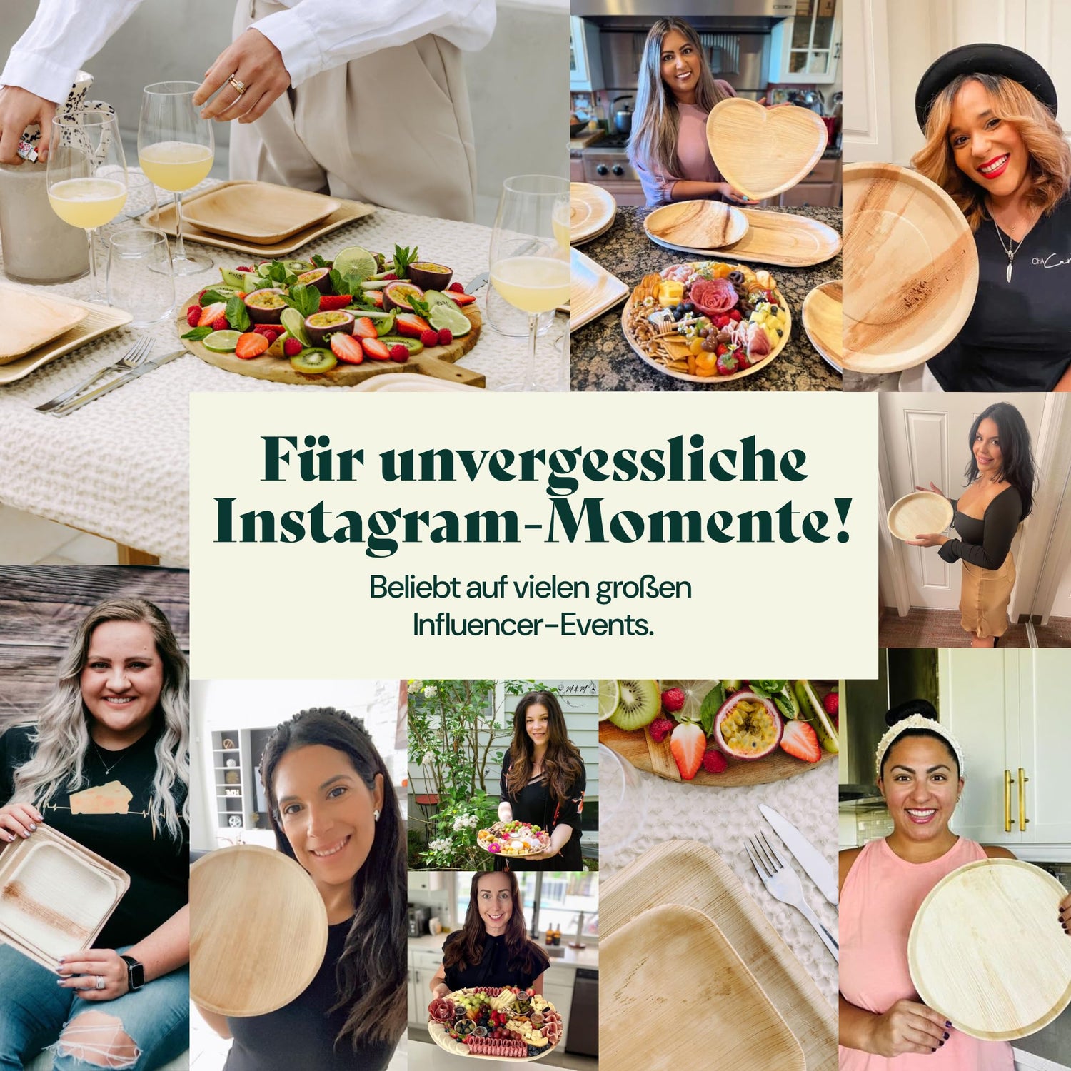 Chic Leaf Palmblatt Teller - 48 Stück Partyteller Set, Umweltfreundlich, Kompostierbar, Nachhaltig Einweggeschirr besser als Pappteller & Plastikteller, Eckig (25.5 & 18 cm)