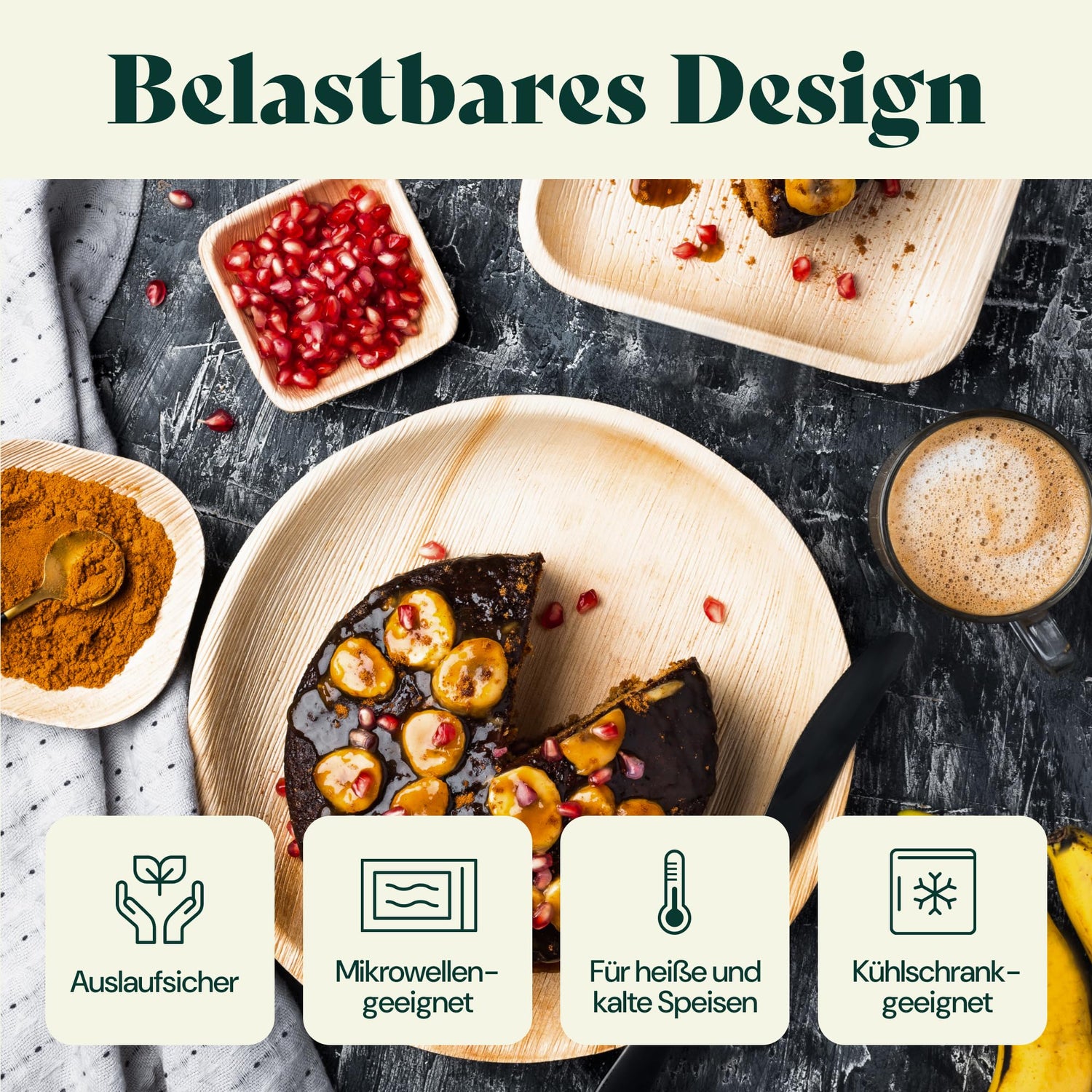 • Robust & Auslaufsicher: Diese robusten Palmteller sind wesentlich stabiler als Pappteller, Plastikteller und Bambusteller. Ihre Langlebigkeit und Stabilität machen es schwer, sich von ihnen zu verabschieden