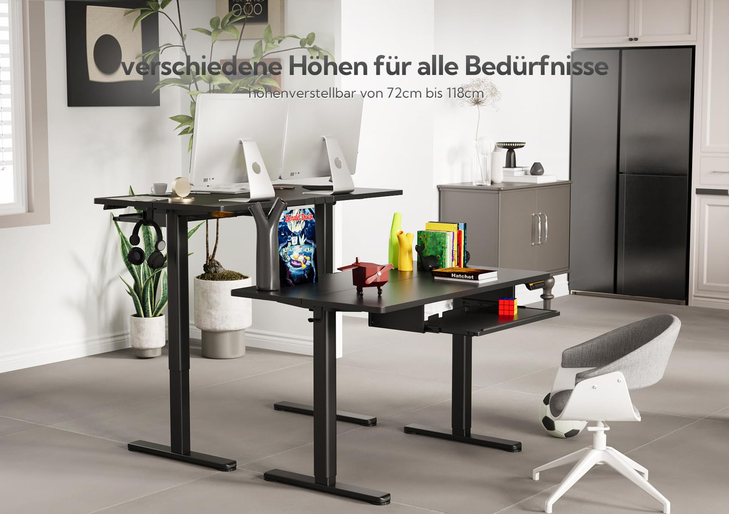 • Schreibtisch HöHenverstellbar Elektrisch: Der elektrischer schreibtisch verfügt über 3 voreingestellte tasten, mit denen die gewünschte höhe von 72 bis 118 cm eingestellt werden kann.