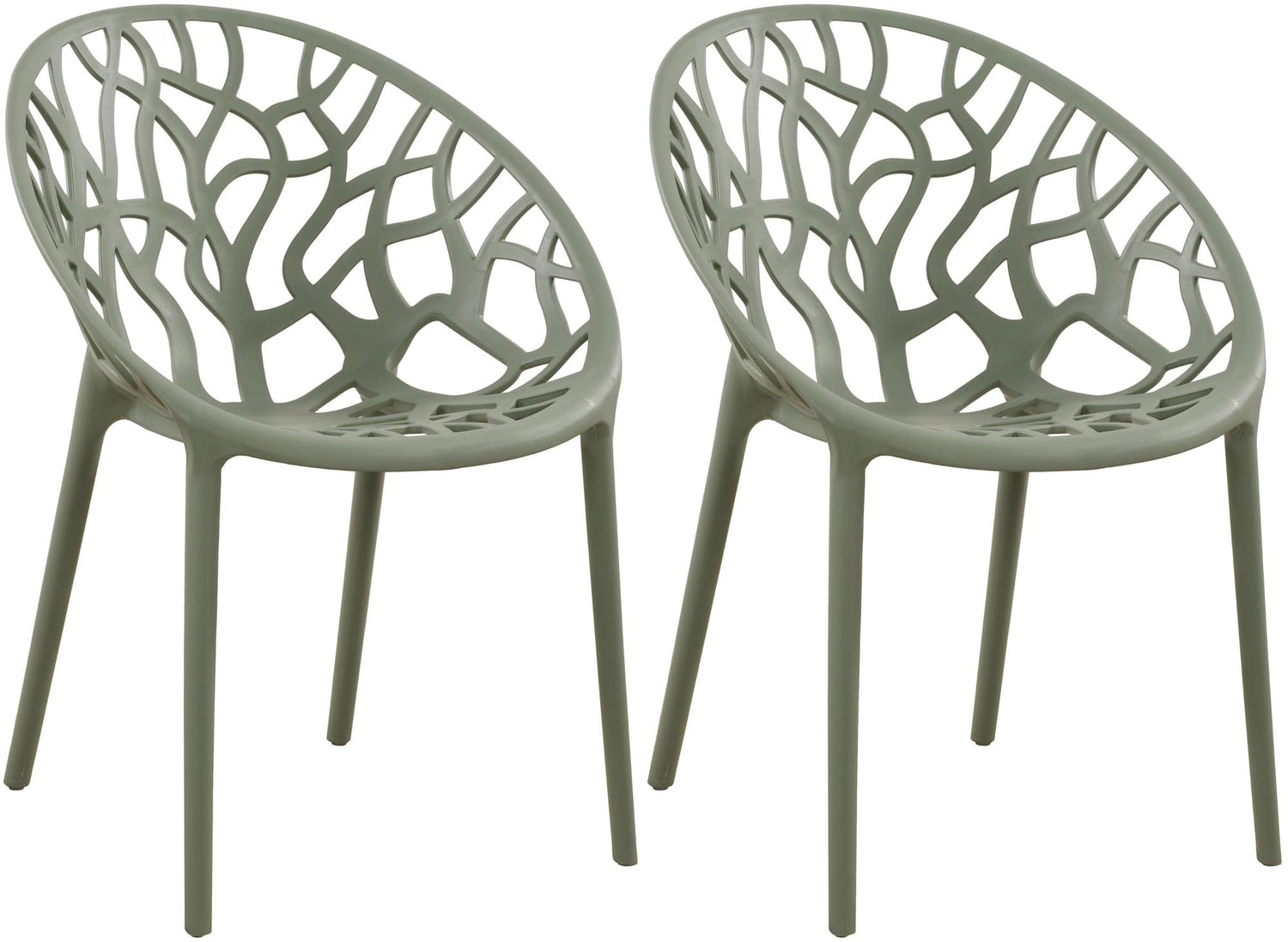 CLP 2er Set Gartenstühle Hope Kunststoff I Stapelstühle wetterfest und UV-beständig I Outdoorstühle pflegeleicht I Sessel für draußen, Farbe:Oliv
