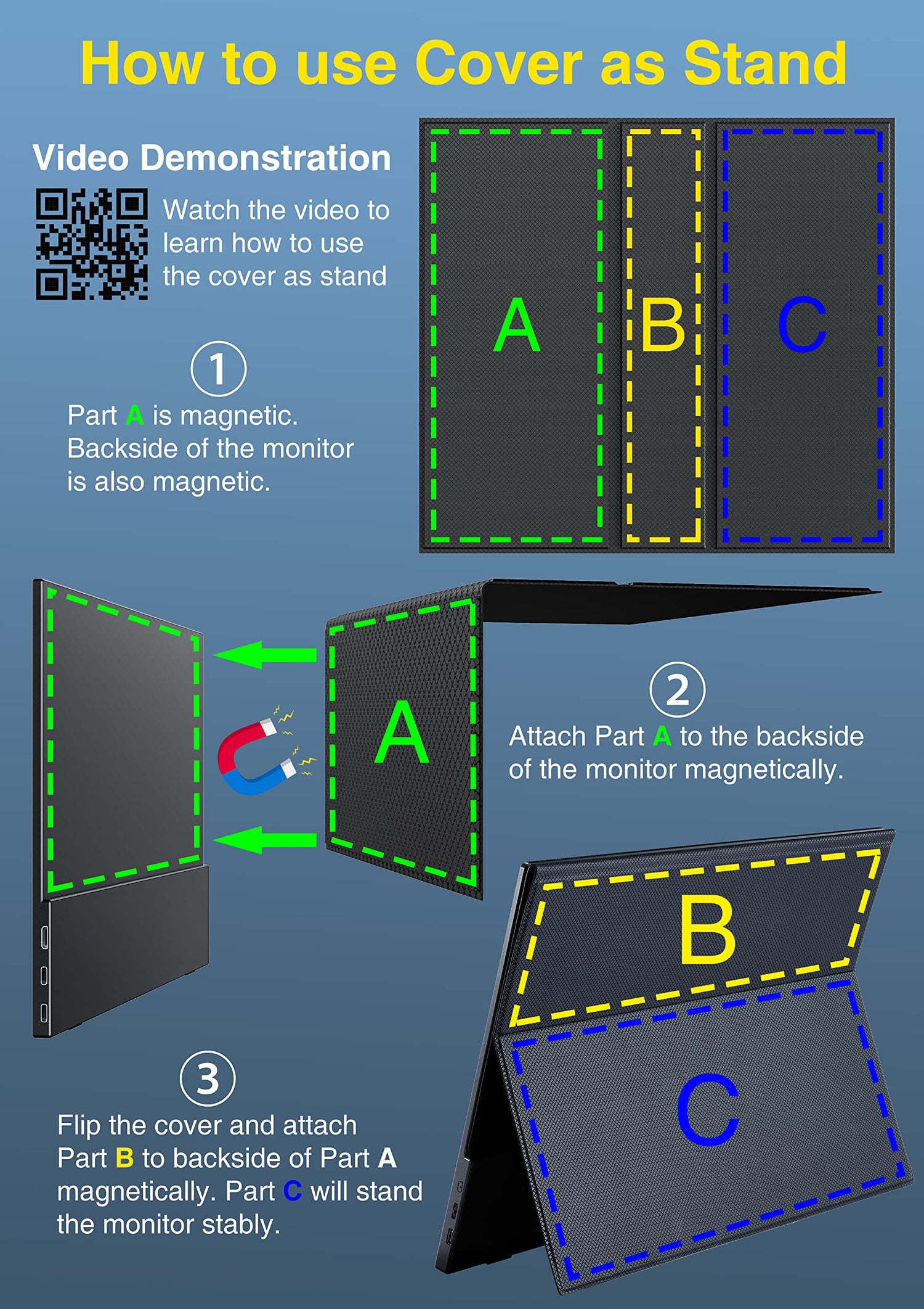 • 【FHD-Monitor, tragbar, VESA-Halterung】Mit einer Auflösung von 1080p, 85 % Farbgamut, 178 ° Voll-Betrachtungswinkel, HDR, und Low Blue, super klar, IPS-A-Grade, dieser tragbare Bildschirm für Laptop mit zwei VESA-Löchern kann leicht und stabil auf einem Ständer für den Landscape und vertikalen Modus montiert werden. für hohe Produktivität y