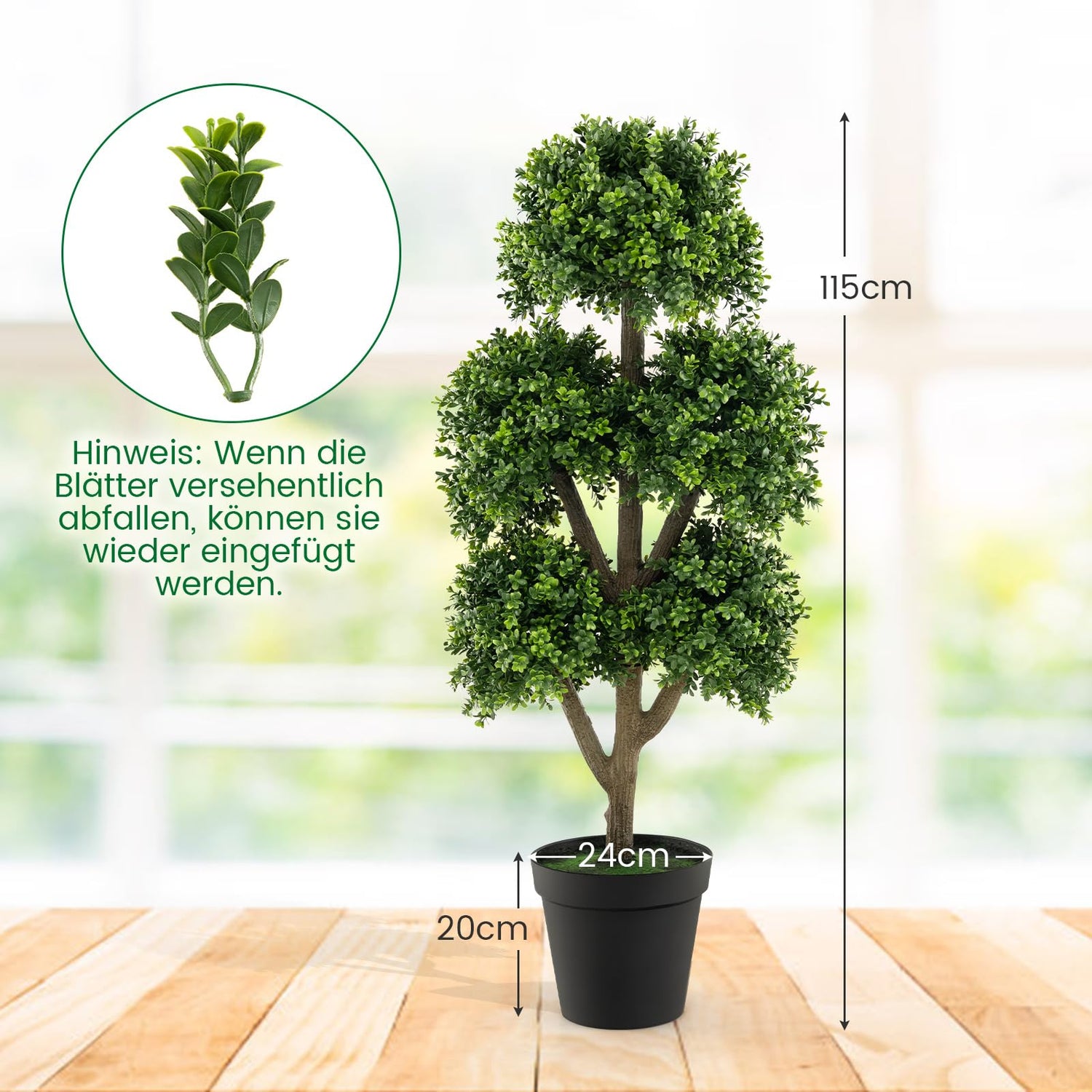 COSTWAY künstlicher Buchsbaum 115 cm, Kunstpflanze mit 5 Kugeln, Dekopflanze im Topf, Kugelbaum Grünpflanzen Kunstbaum, Zimmerpflanze Deko, für Zuhause Büro Garten Veranda, Grün