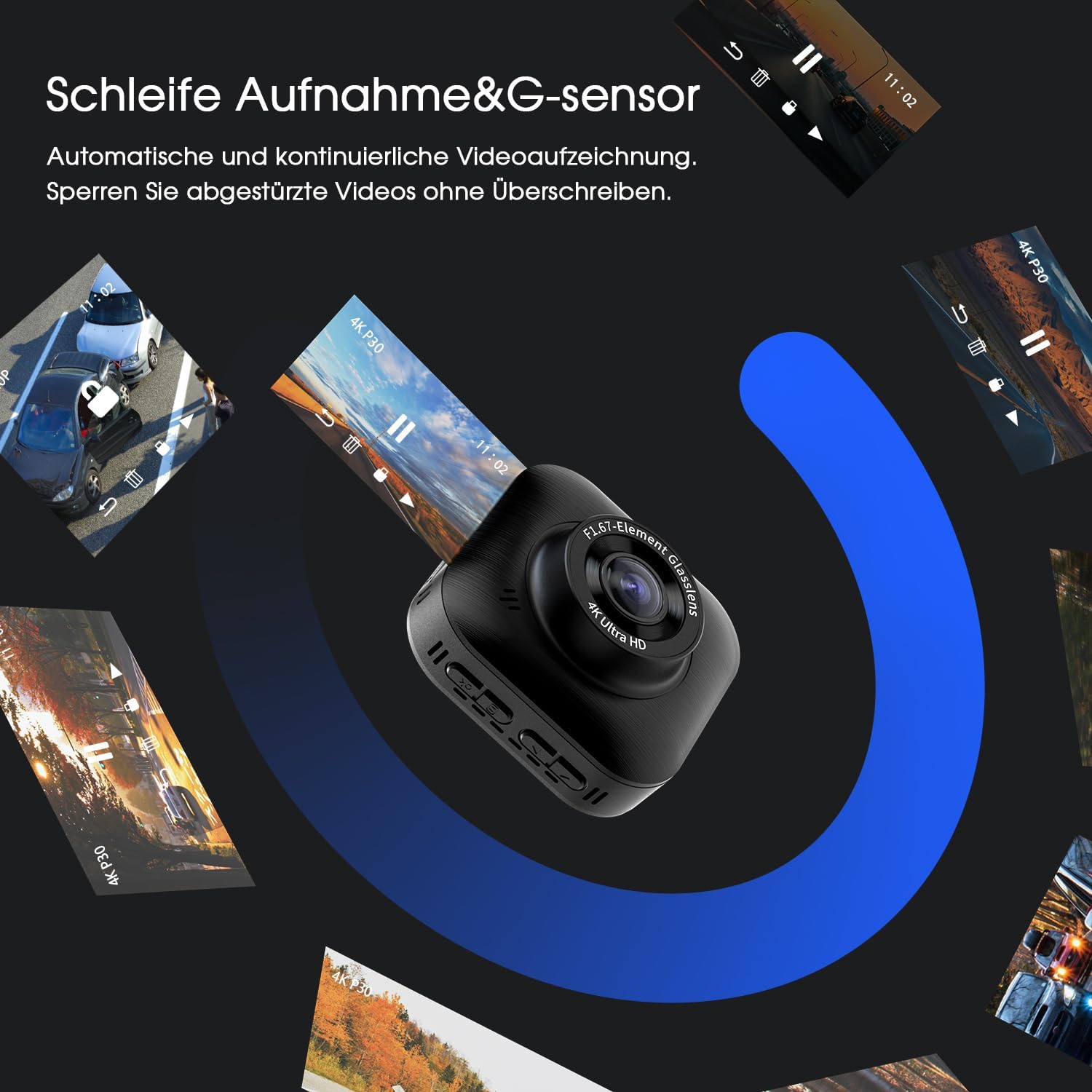 • 4K Dashcam Auto Vorne Hinten Kamera:Die Dashcam erfasst die Straße gleichzeitig in detaillierter 4K-Auflösung vorne und in 1080P hinten. Die Dual-Dashcam wird mit einer separaten Rückfahrkamera geliefert, die über ein 7 Meter langes Kabel mit der vorderen Dashcam verbunden ist. Dank ihres 170° Weitwinkelobjektivs, einer großen Blende von F1.67 und WDR-Nachtsicht können auch bei schlechten Lichtverhältnissen klare Aufnahmen gemacht werden