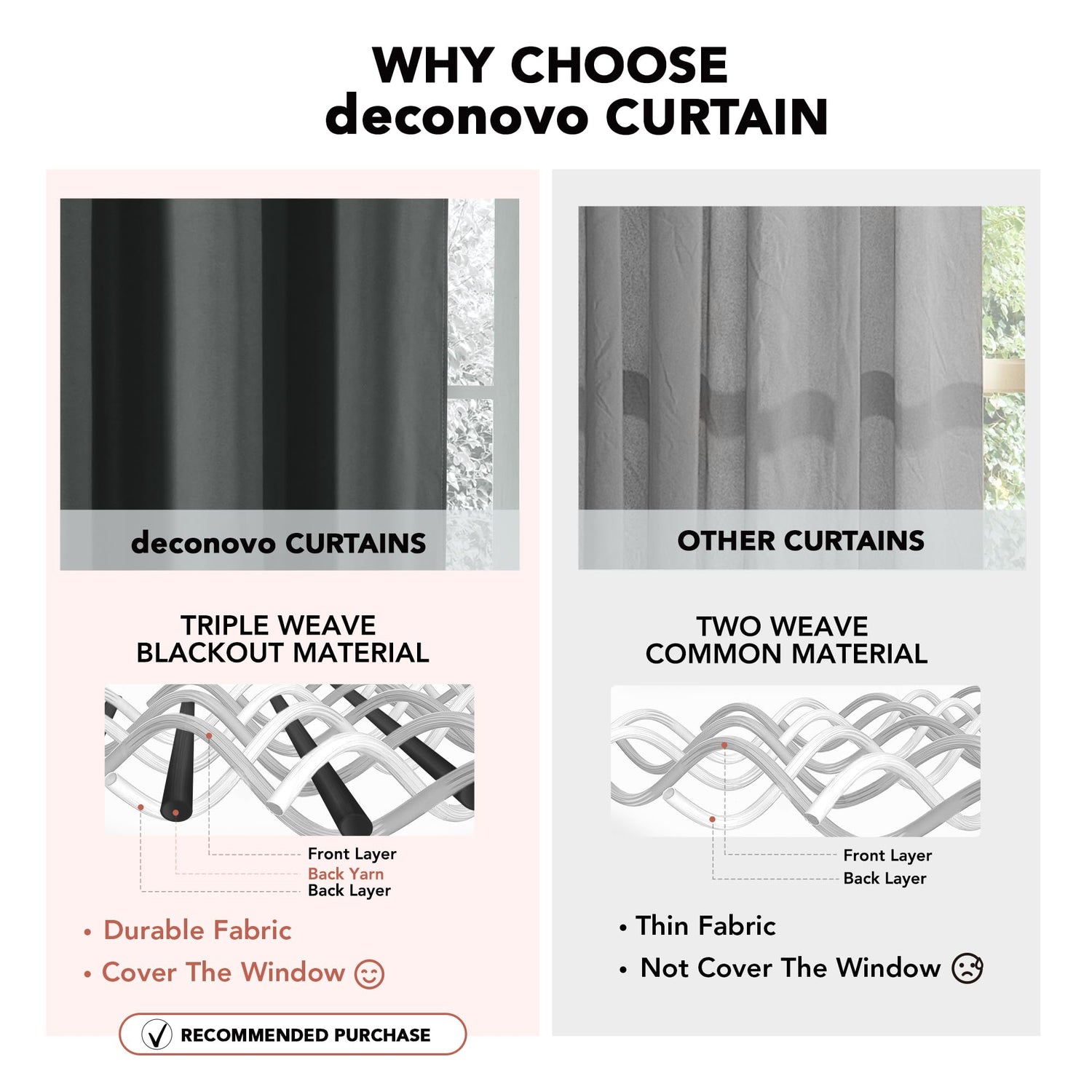 • FANTASTISCHES MATERIAL & SCHICKES DESIGN - Deconovo Verdunkelungsvorhänge bestehen aus 100 Prozent Polyester. Sie sind weich, drapiert, elegant und fühlen sich sehr glatt an. Sie sehen gut an Ihren Fenstern aus und dekorieren Ihr Zuhause. Die Gardine hat ein einfaches Design und bequem Tastempfindung. Die Vorhänge mit reichen Farben können Ihren Raum passen .