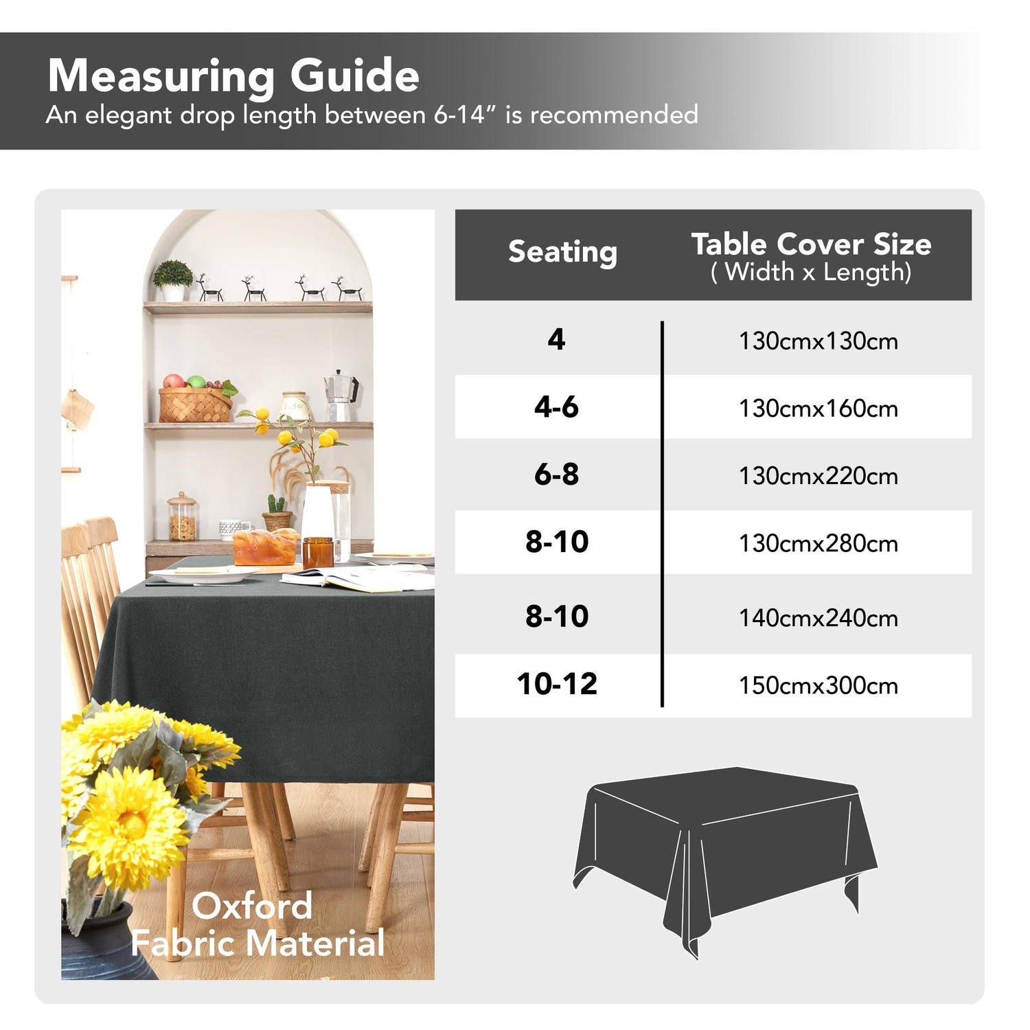 • VIELSEITIGE GRÖßE - Diese Tischdecke misst 130 x 130 cm und passt perfekt auf große Esstische, Familientafeln oder sogar Gartentische. Sie ist sowohl für den täglichen Gebrauch als auch für besondere Anlässe wie Feiern oder Outdoor-Partys geeignet. Ihre großzügigen Abmessungen bieten genug Abdeckung, um Tische jeder Form stilvoll zu schützen.