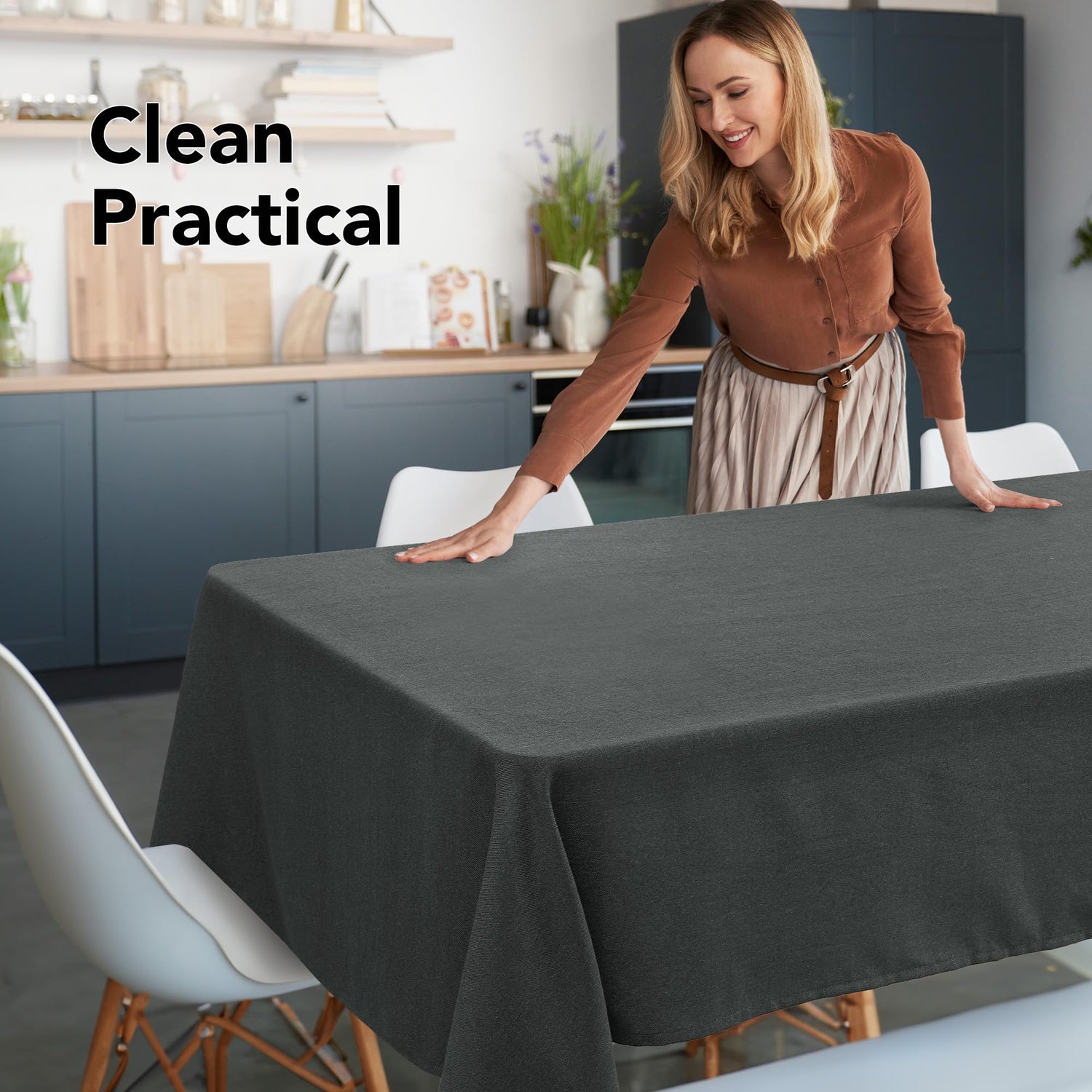 Deconovo Tischdecke Abwaschbar Wasserabweisende Tischdecken Tischwäsche Lotuseffekt Tischtuch Leinenoptik, 130x130 cm, Grau, 1 Stück